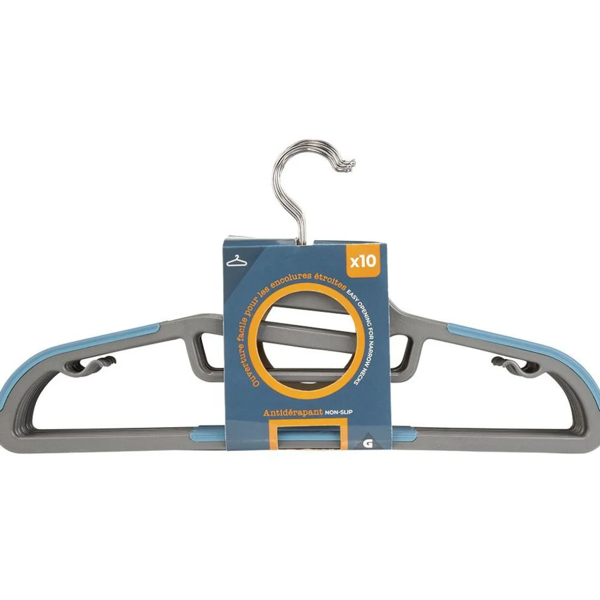 Lot de 10 cintres antidérapants avec ouverture facile pour les encolures étroites.