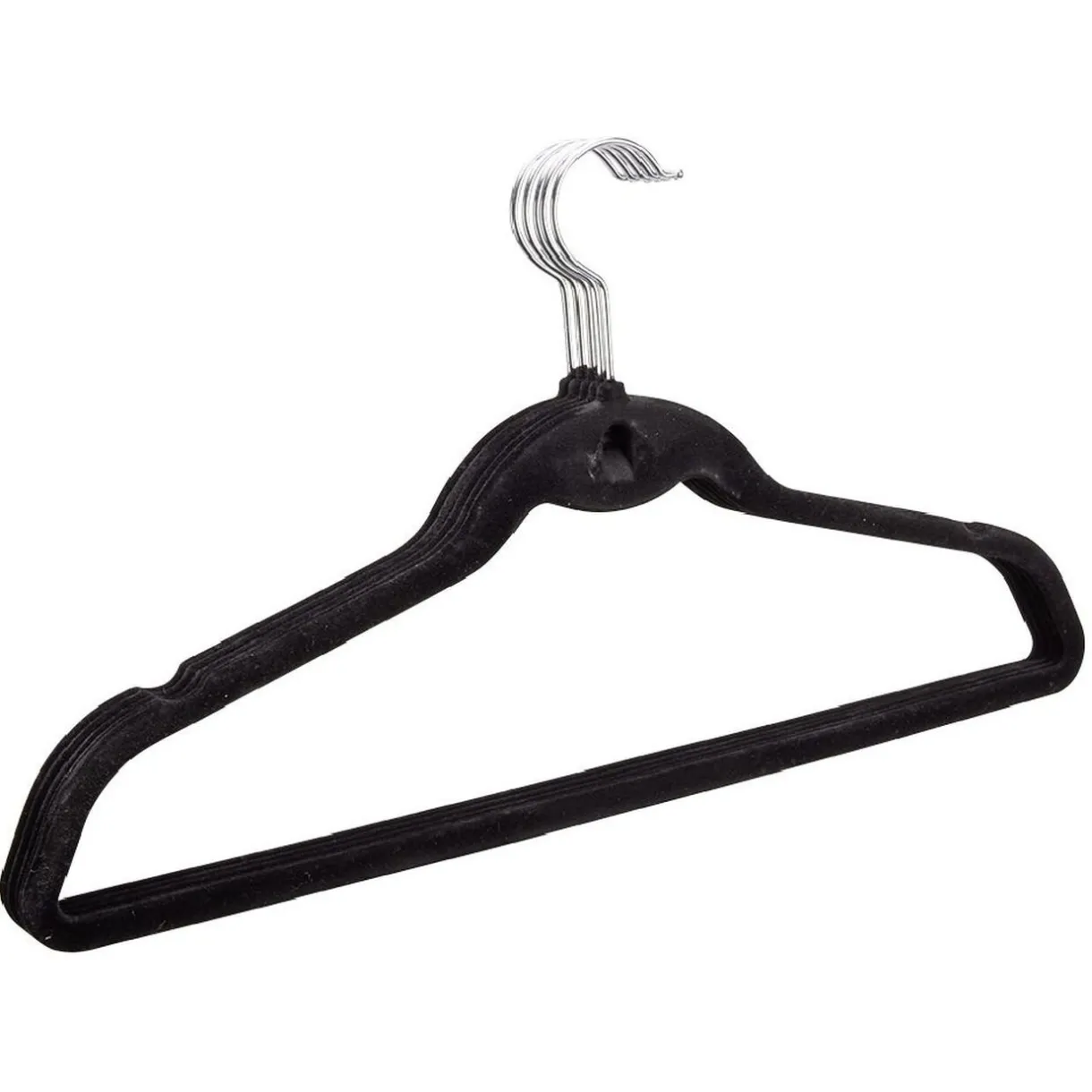 Lot de 5 cintres en plastique noir avec crochet métallique rotatif.