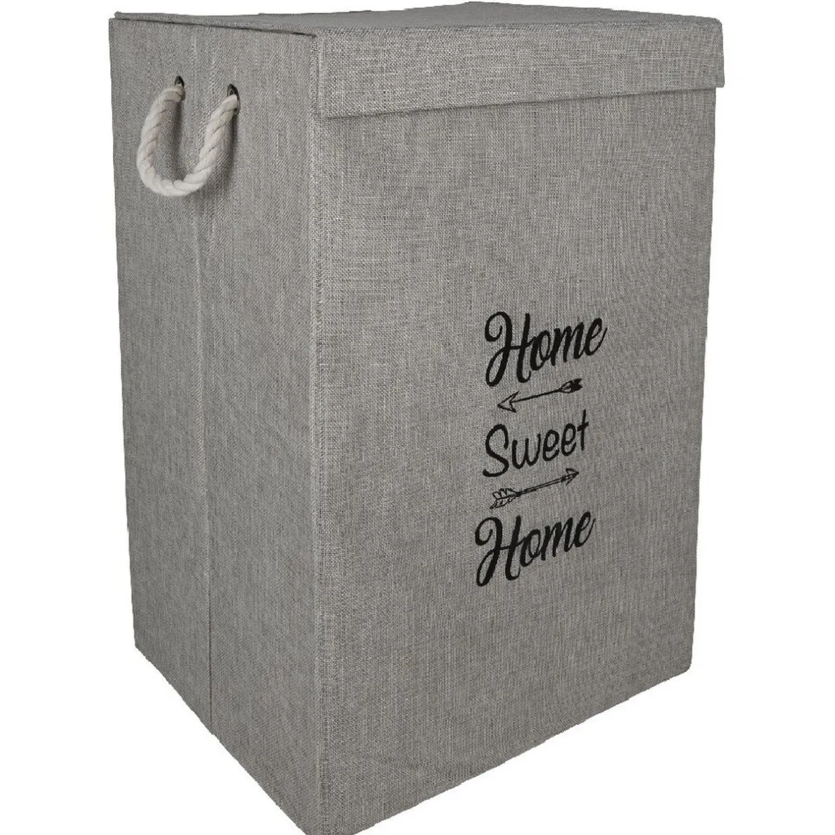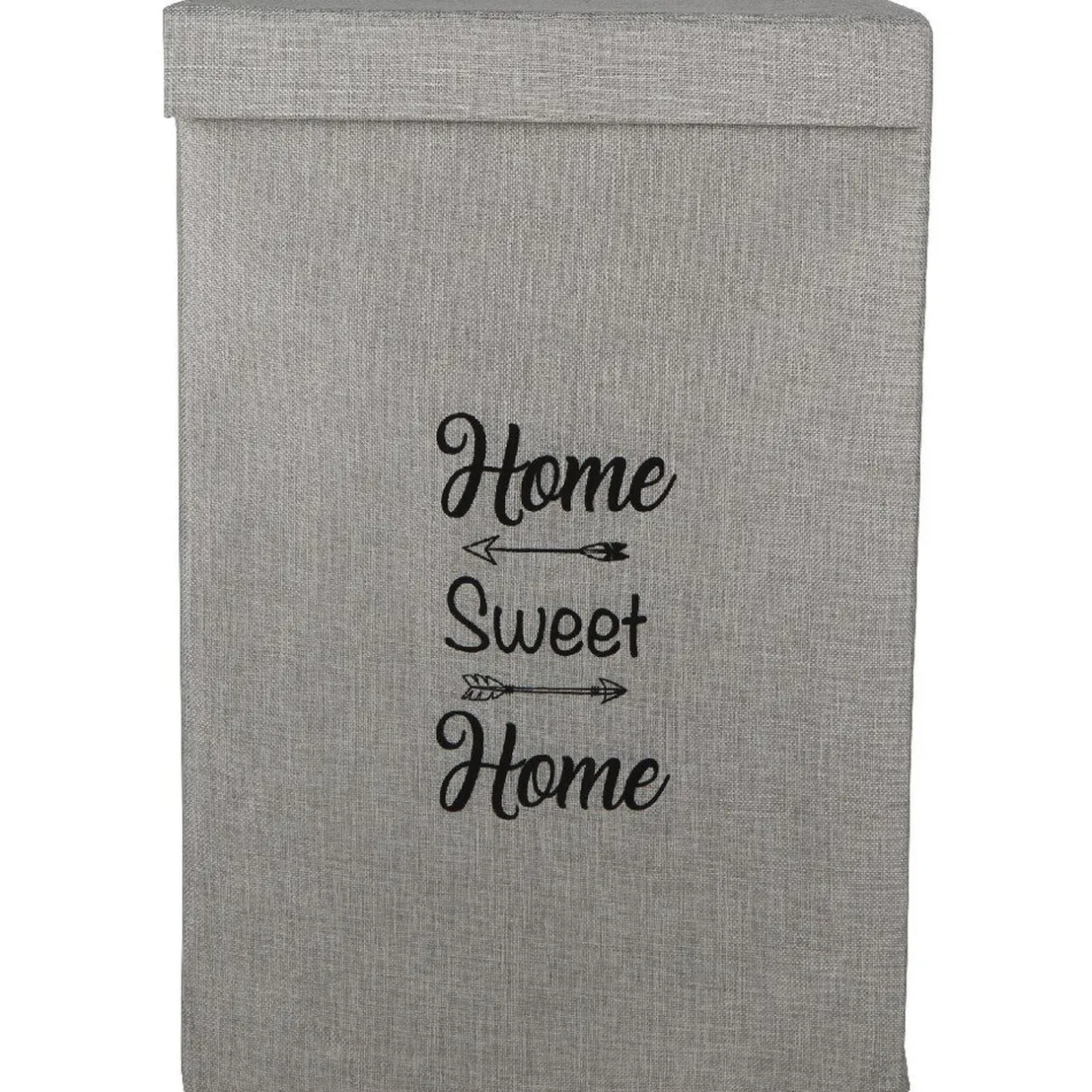 Coffre de rangement rectanguaire en polyester de couleur gris clair design « home sweet home ».