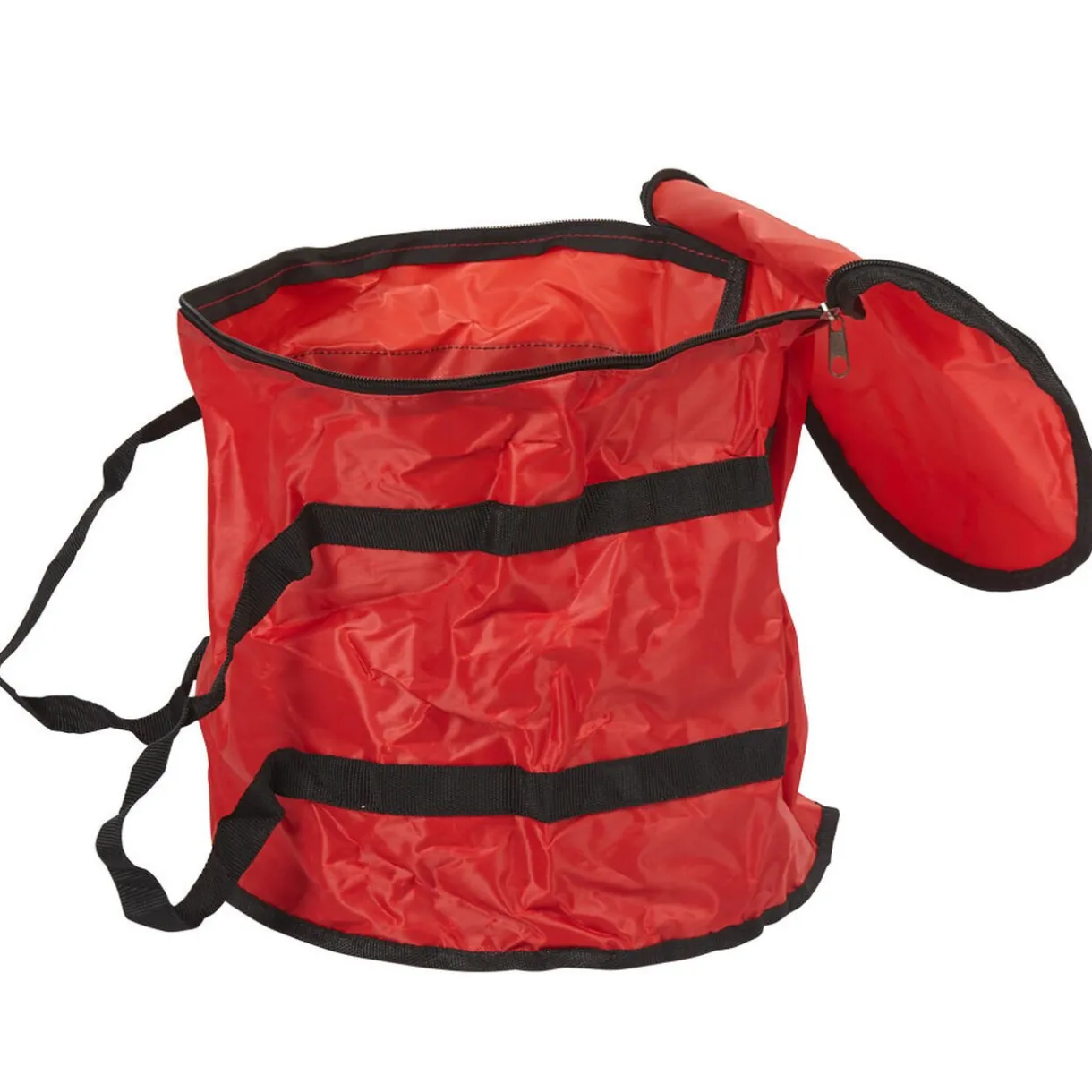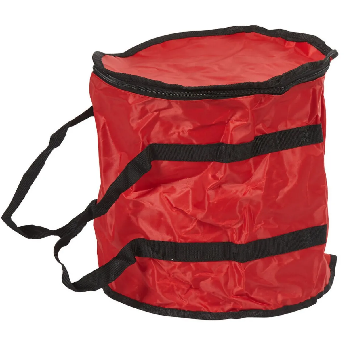 Housse de rangement pour guirlande électrique de couleur rouge et noir.