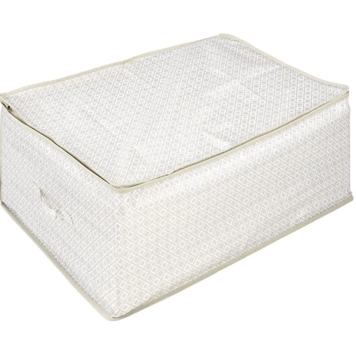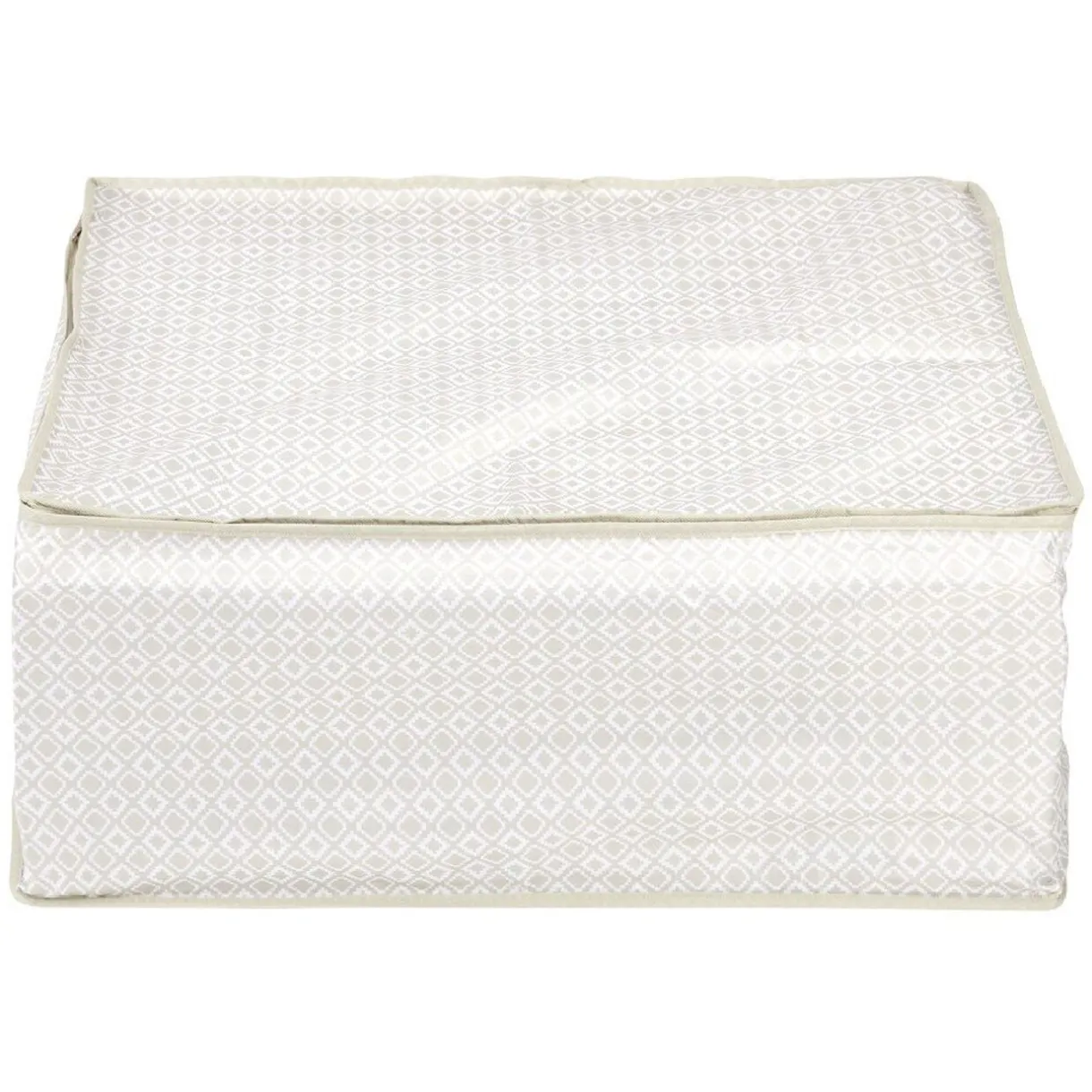 Stockez et protégez vos vêtements ou autres affaires grâce à cette housse de rangement rectangulaire avec motifs triangles beiges et blancs.