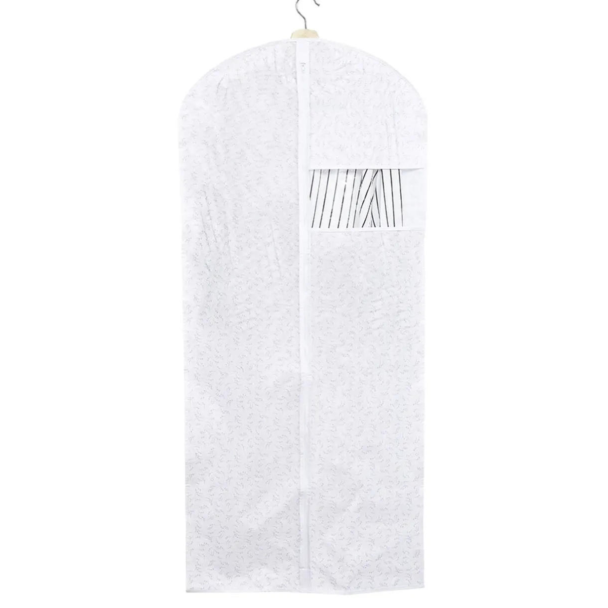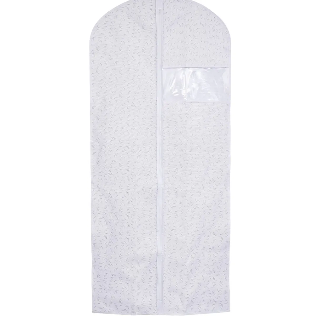 Housse pour tringle à vêtement en plastique blanc. Idéale pour stocker vos robes, vestes ou costumes à l’abri de la poussière mais aussi pour transporter vos vêtements en voyage ou au pressing sans les abîmer.