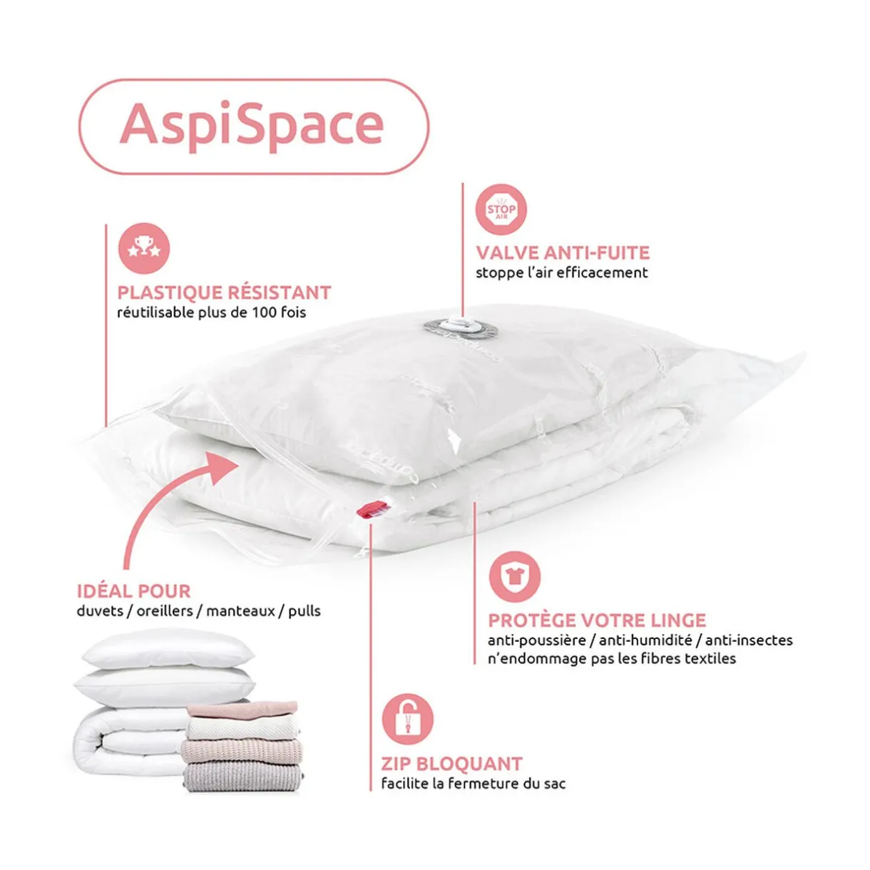 En plus de gagner de l’espace, vos vêtements et autres linges seront protégés de la poussière, des acariens, des mites et de l’humidité.