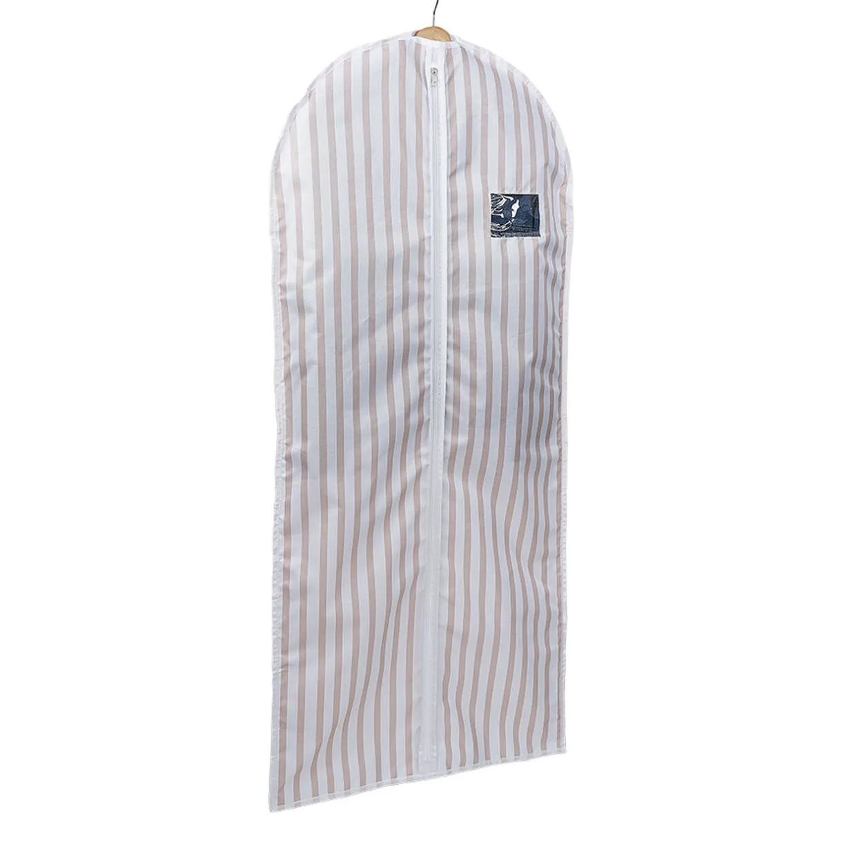 Housse pour vêtement avec fenêtre transparente permettant de jeter un coup d’oeil rapide sur son contenu.