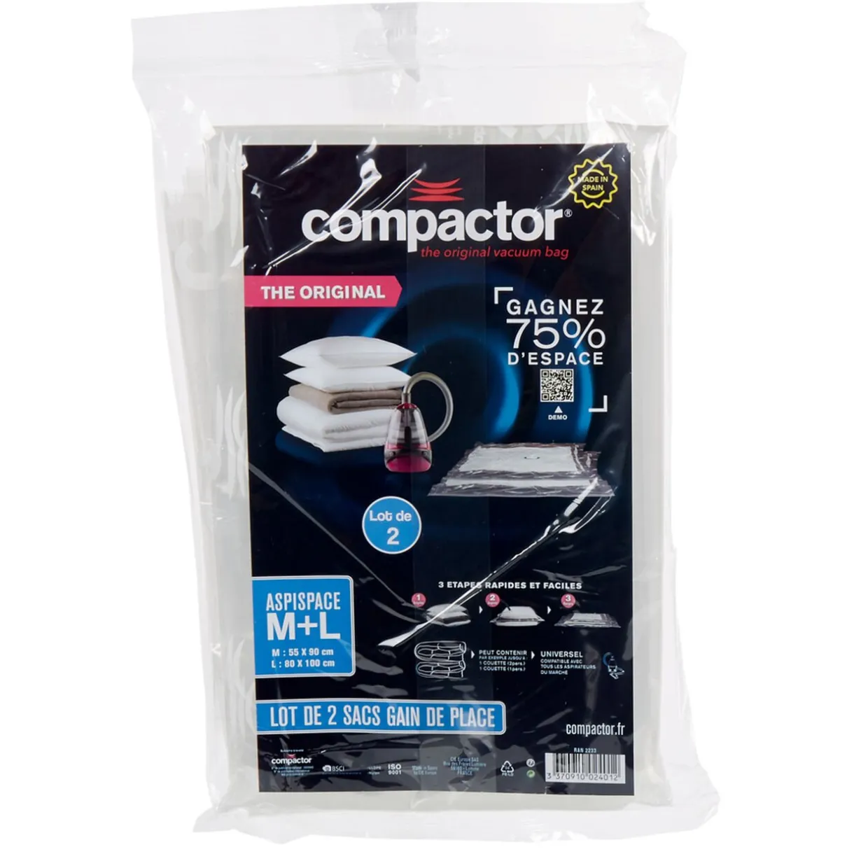 Grâce à ce lot de 2 grandes housse vide air, une taille M et une taille L, stockez à l’abri de l’humidité toutes vos affaires. En les utilisant avec un aspirateur, gagnez 75 % espace de rangement chez vous.