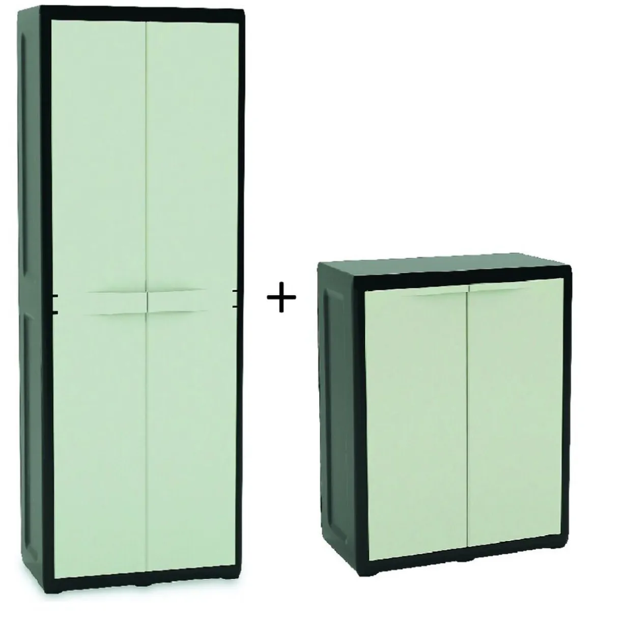 Lot de 2 armoires Toomax, dim. 65x37xh.85 cm et dim. 65x37xh.165 cm, polypropylène.