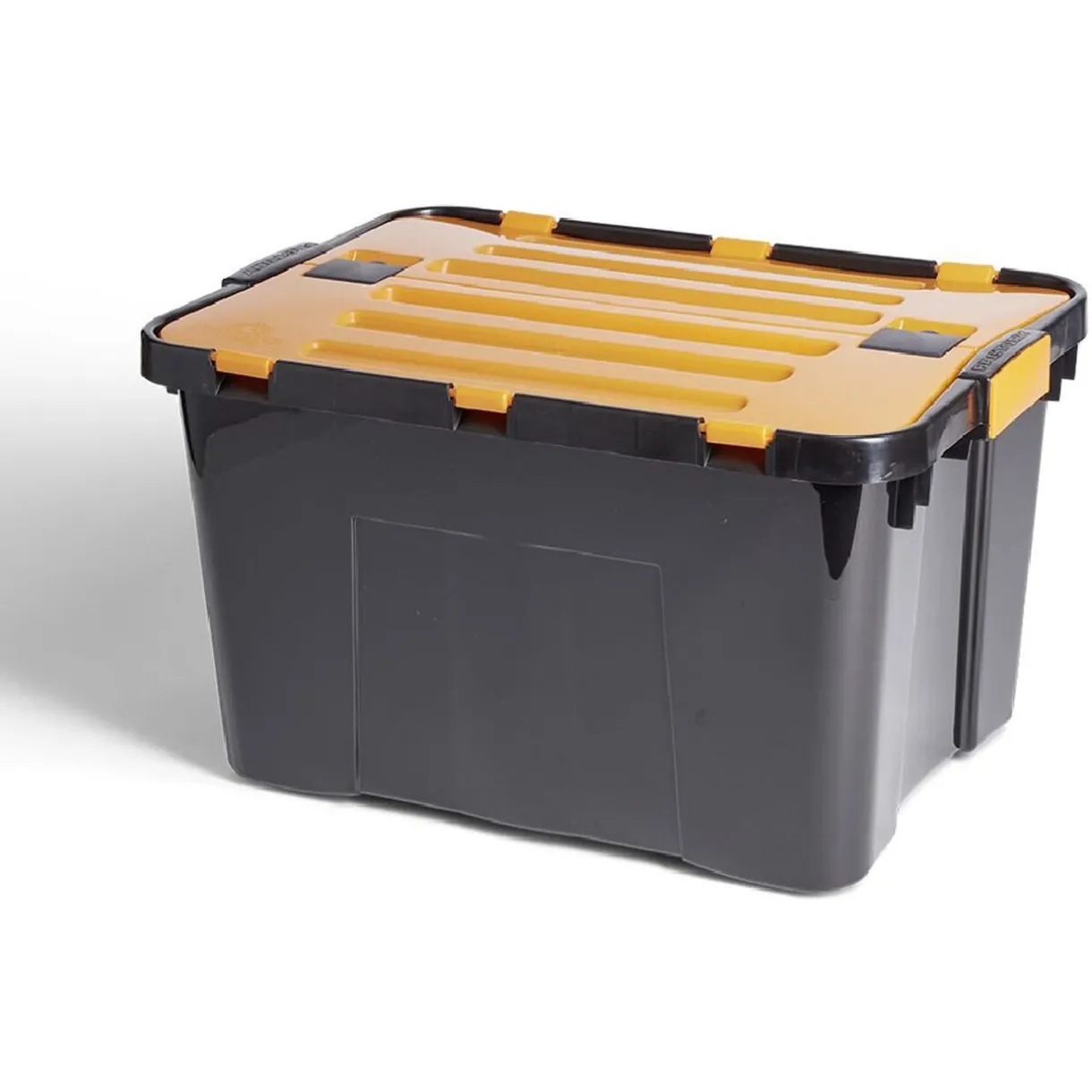 Lot de 2 boîtes de rangement en plastique orange, idéales pour l’organisation de vos outils et accessoires de bricolage.