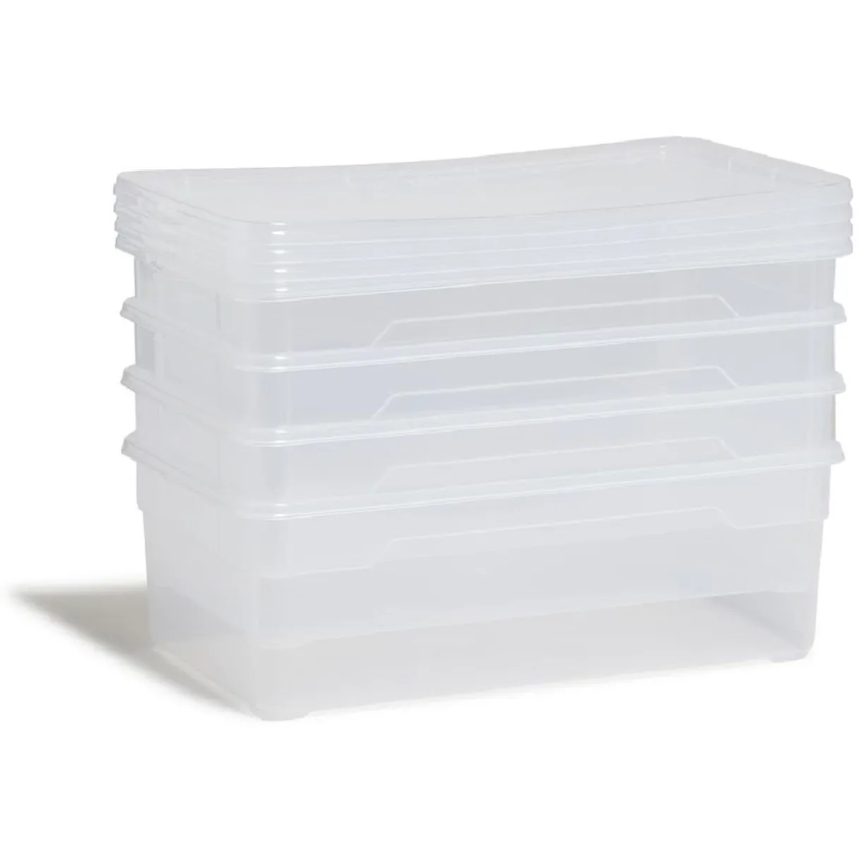 Lot de 4 boîtes de rangement transparentes en plastique de 11L chacune, dotées de couvercles.