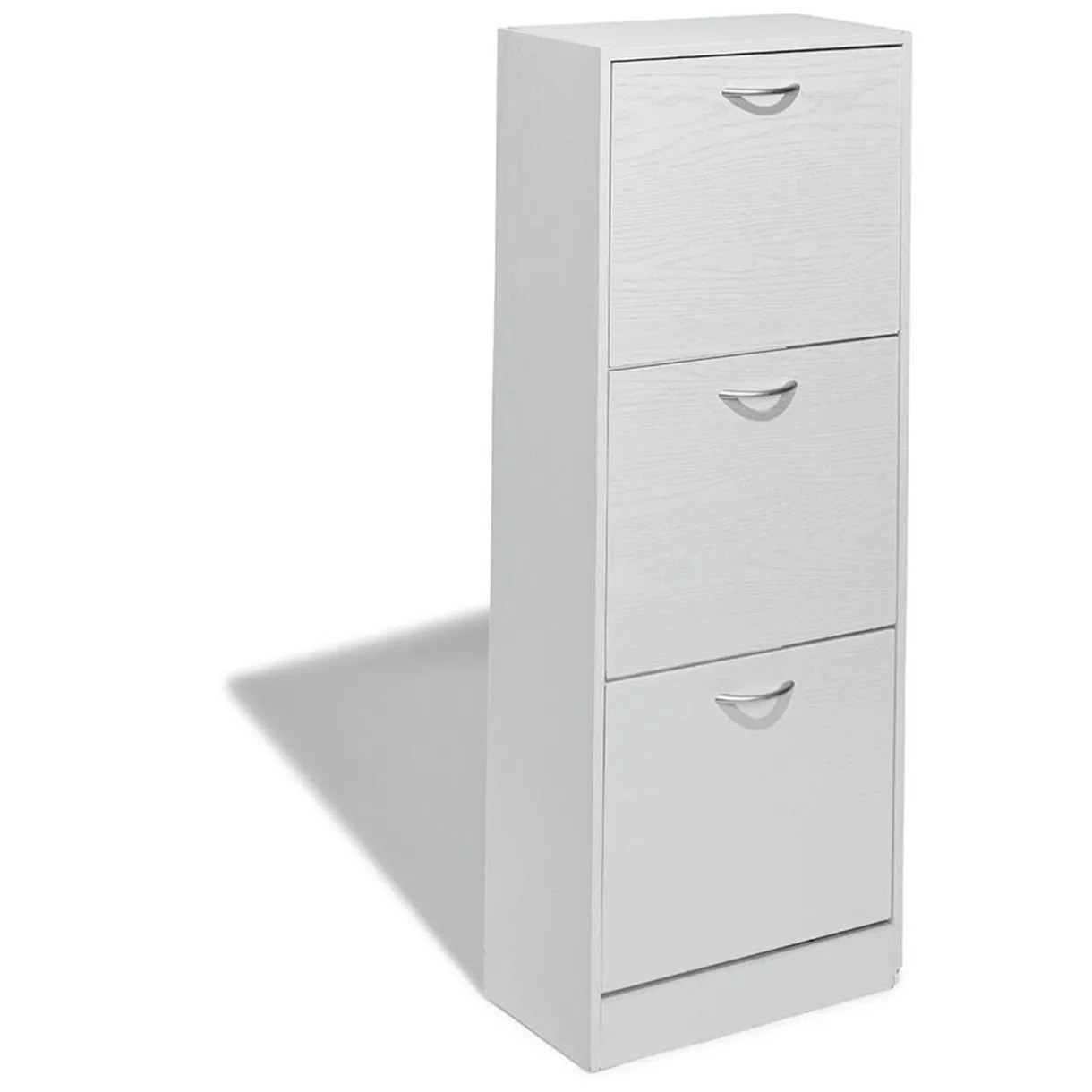 Vos souliers ne traîneront plus au sol grâce au meuble à chaussures Utah ! Dans votre couloir près de votre porte d’entrée, installez-le puis profitez d’un grand espace de rangement grâce à ses 3 tiroirs battants. D’une faible largeur, il ne prendra que peu de place dans votre intérieur, tout en donnant la possibilité de placer jusqu’à 12 paires de chaussures. Vous pouvez également utiliser sa surface afin d’ajouter un peu de décoration dans votre pièce. N’hésitez pas à y placer vos photos, vos plantes, ou encore vos statuettes. D’un design contemporain, il dispose d’une structure en panneaux de particules revêtue de papier décor. De couleur blanche, n’hésitez pas à installer ce meuble afin de rajouter une note esthétique au design de votre pièce. Installez également les autres meubles de la gamme Utah pour un mobilier complet. Étagère, chiffonnier ou encore buffet, vous avez à votre disposition toutes sortes de meubles afin d’harmoniser votre intérieur.
