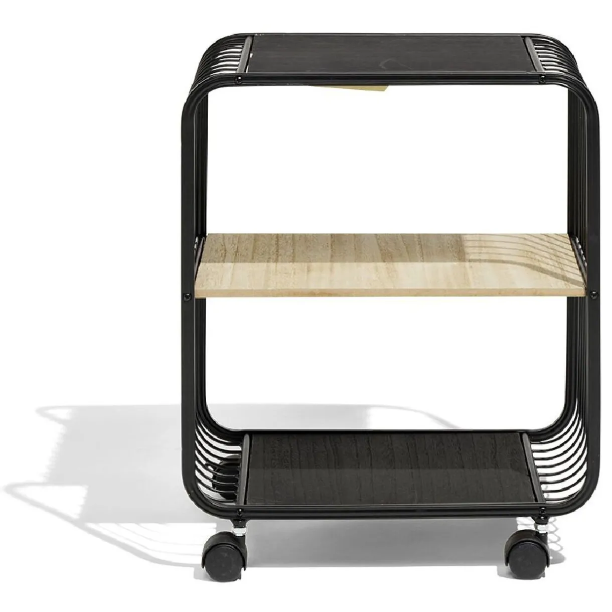 Équipé de roulettes pour une mobilité facile, il dispose de 3 niveaux dont une étagère en bois, parfait pour organiser efficacement votre espace de vie ou de travail.