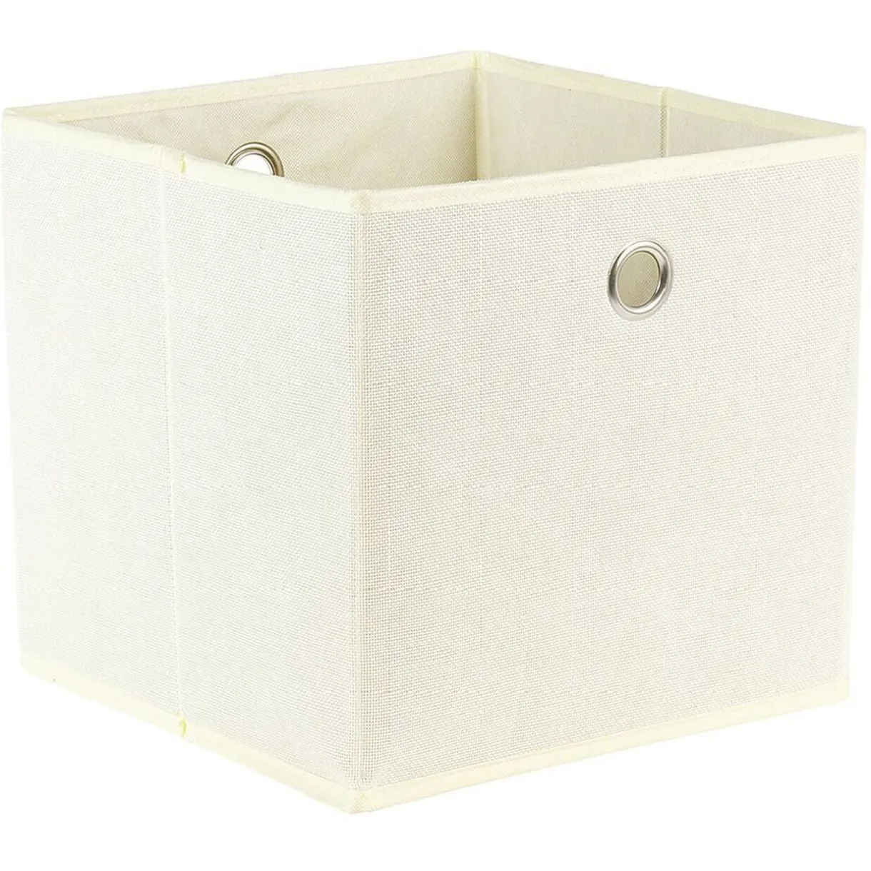 Panier de rangement uni blanc cassé pour l’organisation d’une étagère, pratique dans une chambre d’enfant pour ranger les jouets et autres objets du quotidien.