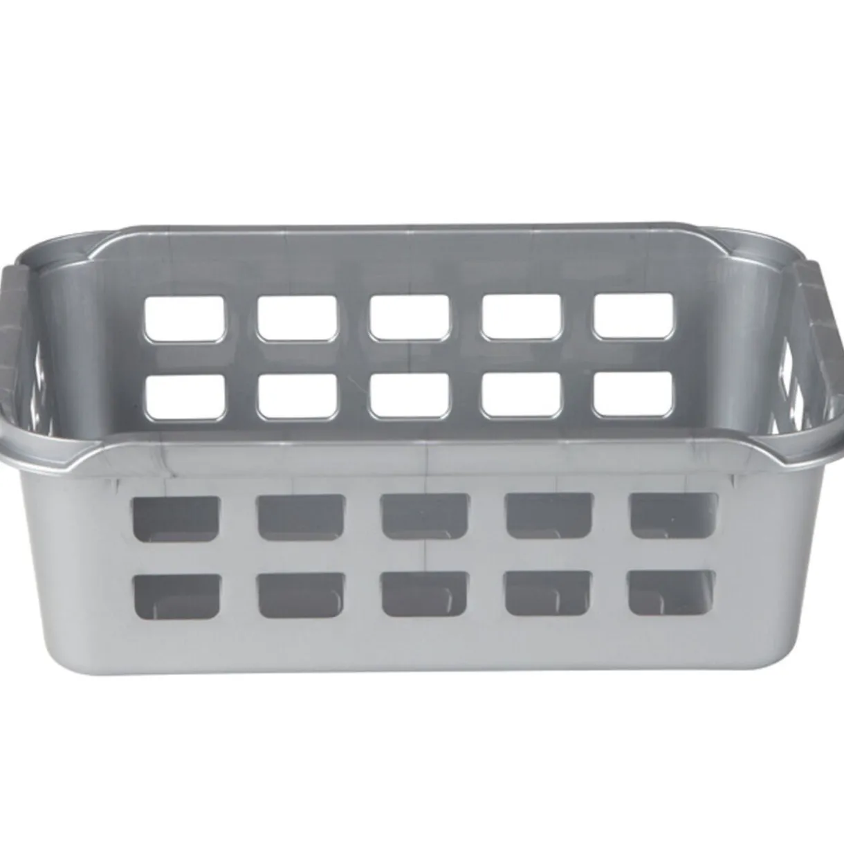 Panier de rangement blanc, dim. 18,5x14x6 cm, plastique.