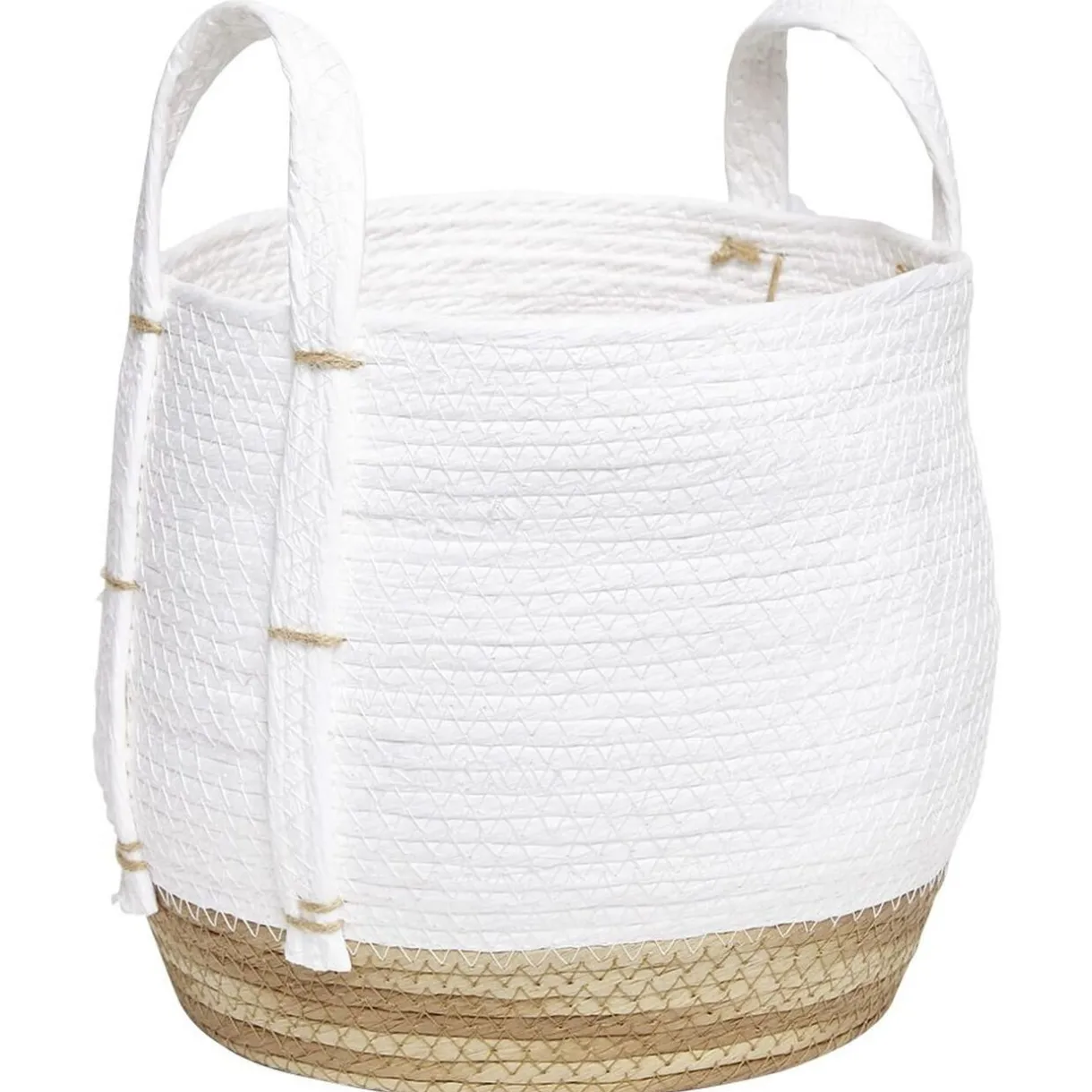 Panier Bora Bora naturel et blanc avec anses, idéal pour décorer votre intérieur et lui donner un style nature et tendance.