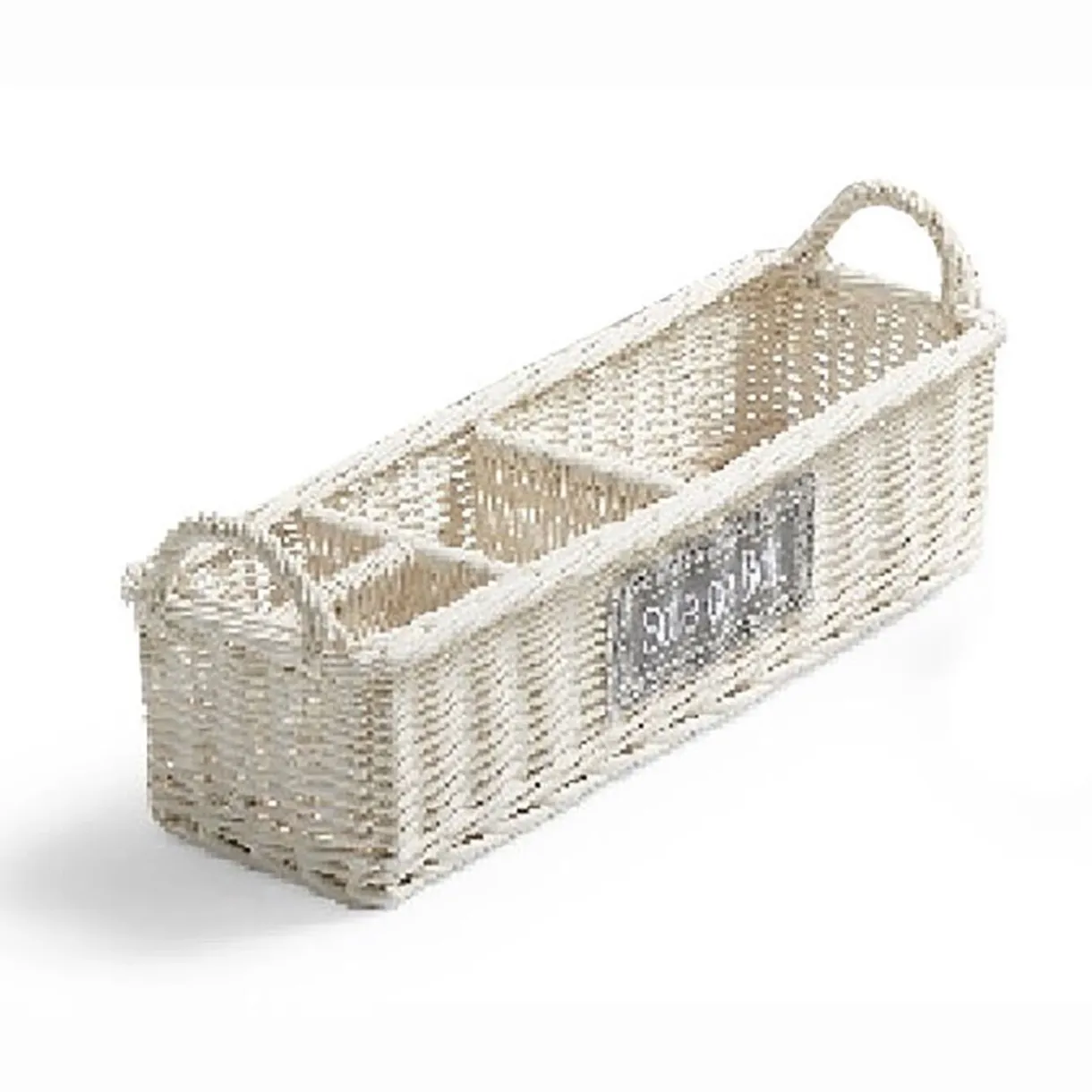 Panier en osier blanc avec compartiments de rangement design « salle de bain ».