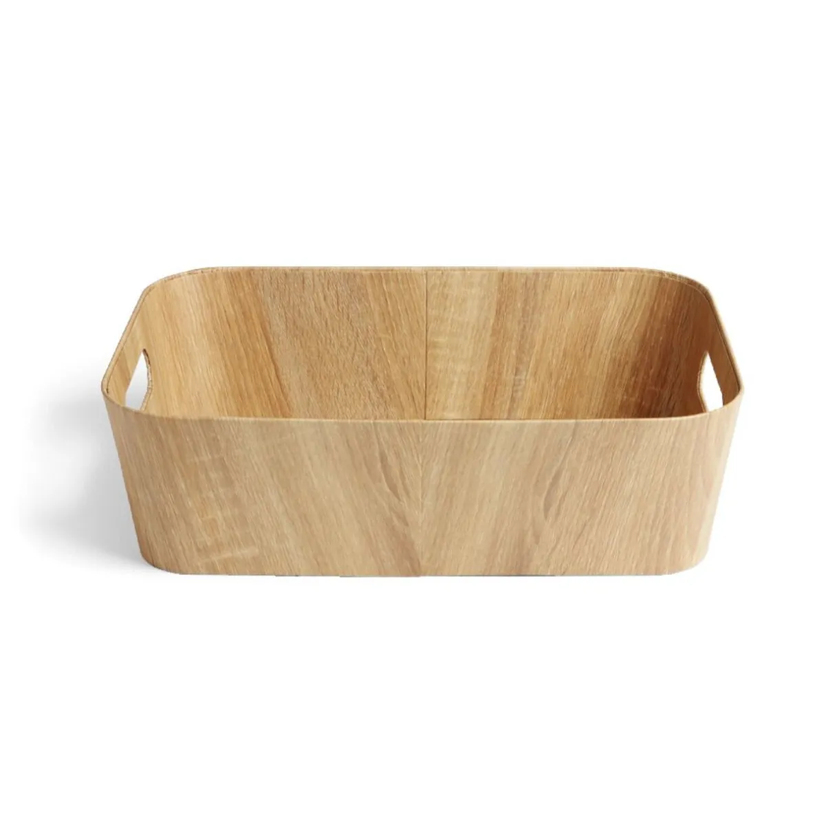 Optez pour cette panière imitation bois pour une organisation élégante de vos affaires.