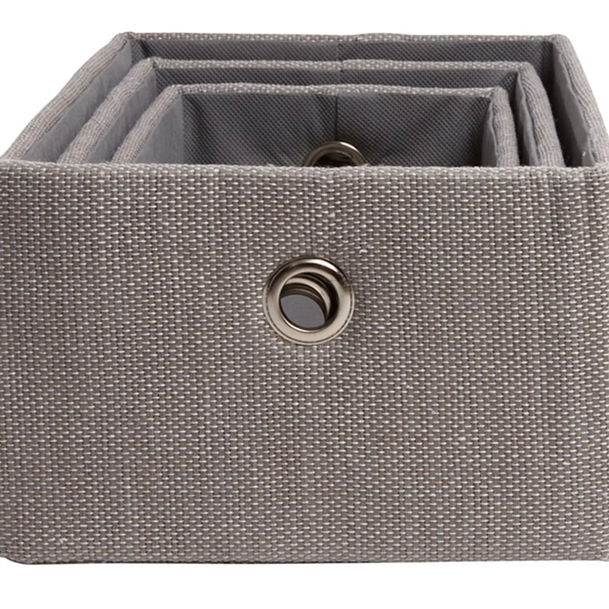 Panière déco empilable grise X3,idéale pour décorer et ranger votre salon, votre bureau ou votre chambre.