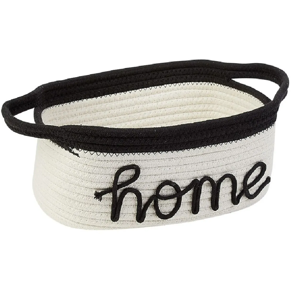 Panière en coton de couleur blanche et noire avec inscription « home ».