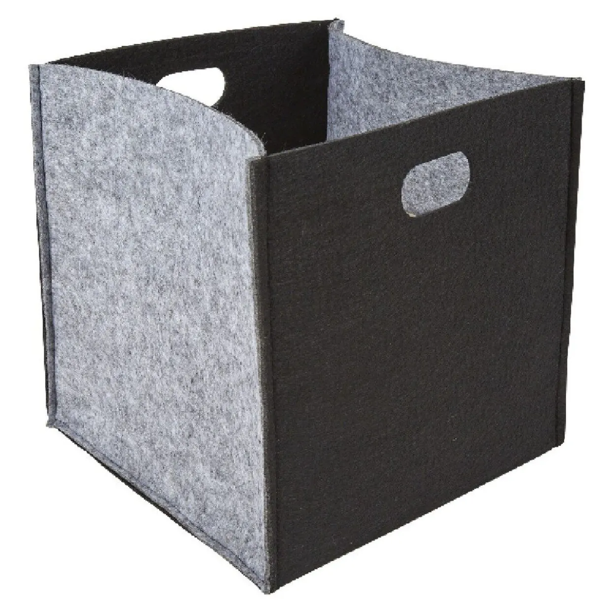 Cube de rangement en feutrine, avec 2 anses, de couleur noire et grise sur les faces opposées. Vous pouvez donc avoir certaines faces grises et d’autres noires.
