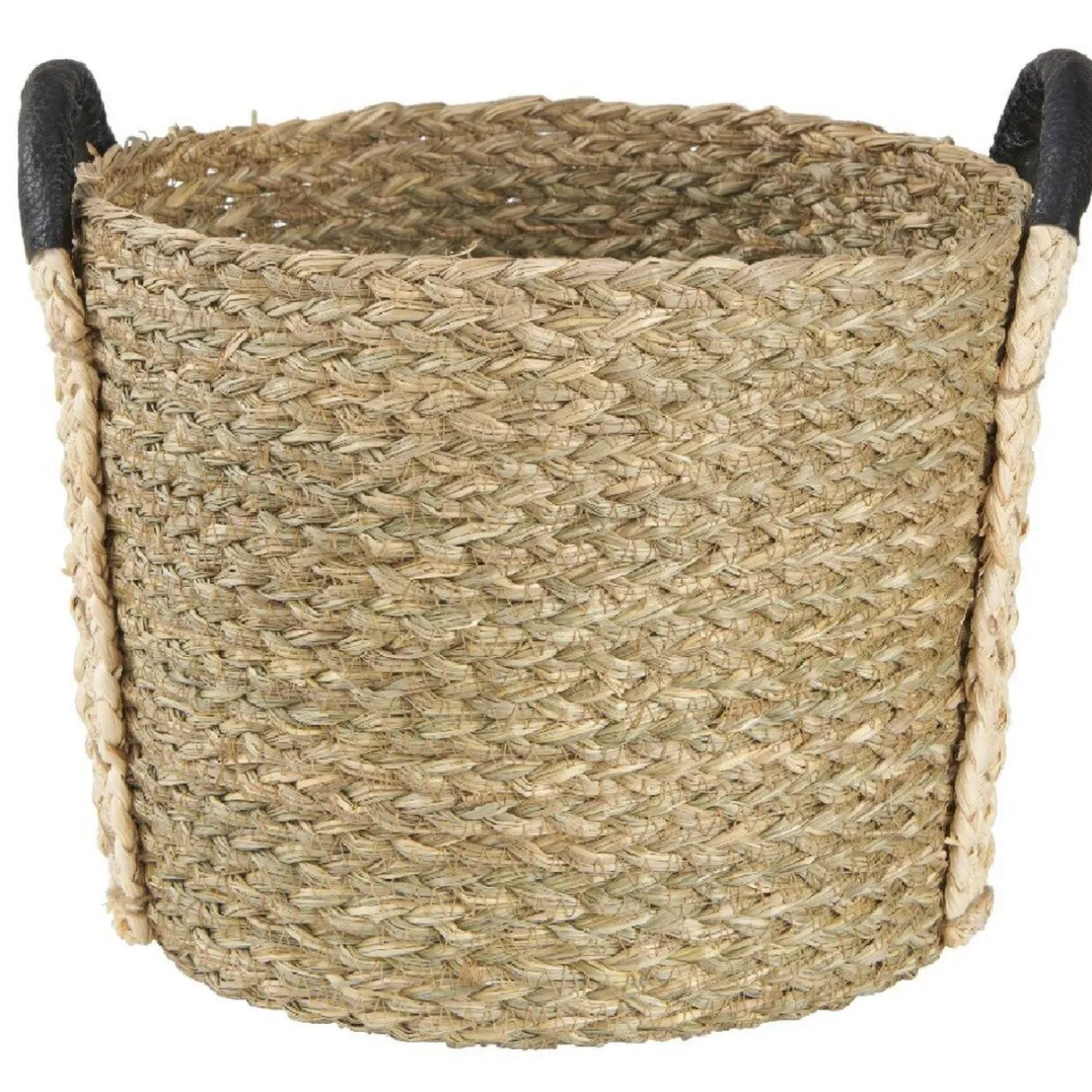 Lot de trois panières en jonc naturel avec anse effet cuir noir. Ultra tendance et déco, cet ensemble de 3 panières de tailles différentes sera du plus bel effet dans votre intérieur!