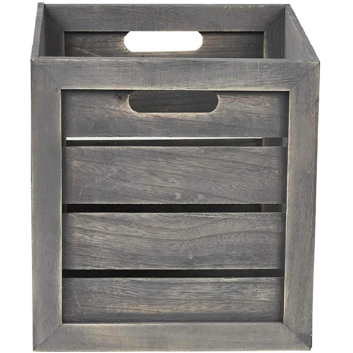 Panière grise en bois de particules cérusé. Idéale pour optimiser votre rangement quelque soit la pièce !