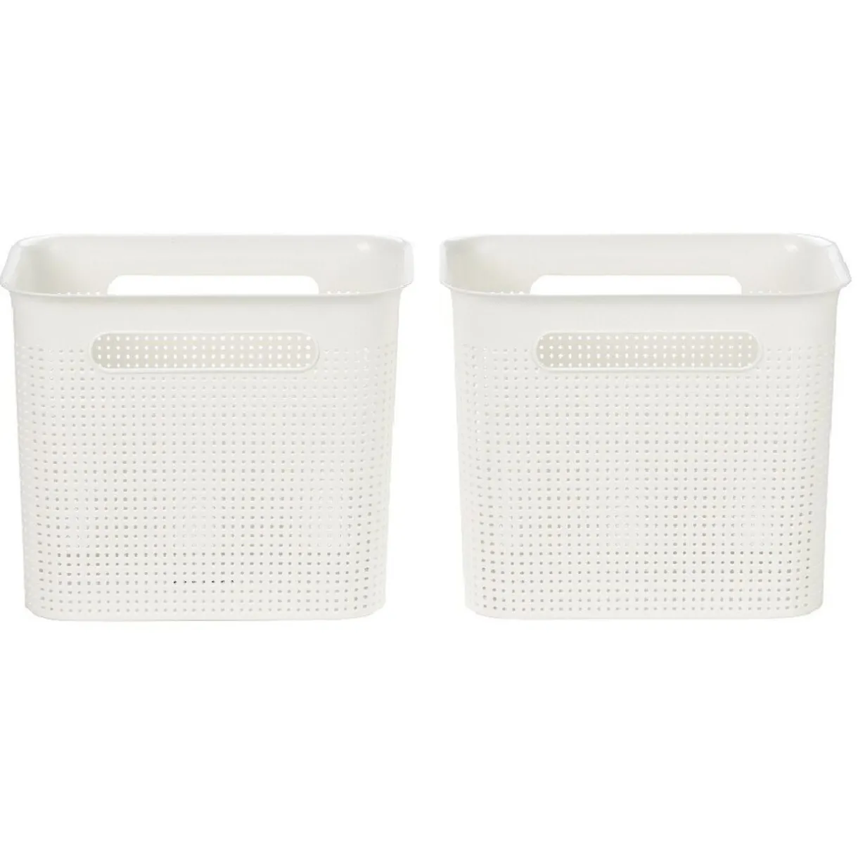 Lot de deux paniers à linge blancs design perforé, d’une capacité de 7 litres chacun. Essentiellement utilisés pour transporter le linge.