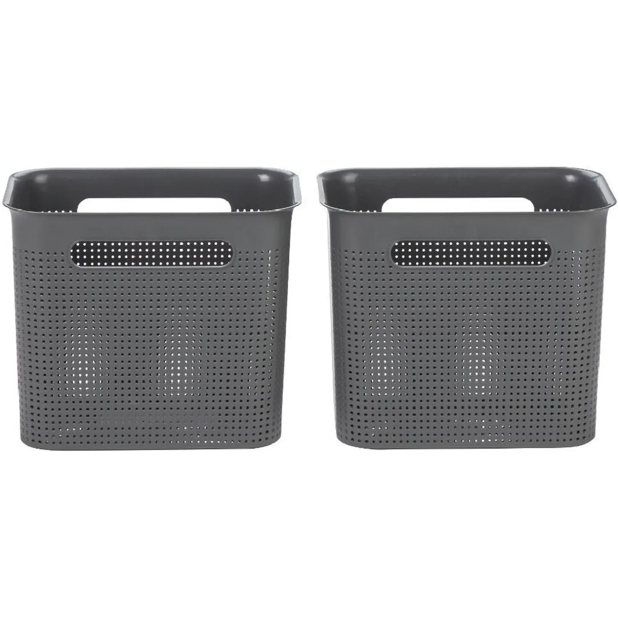 Lot de deux paniers gris design perforé, d’une capacité de 7 litres chacune. Idéalement utilisés pour transporter votre linge.