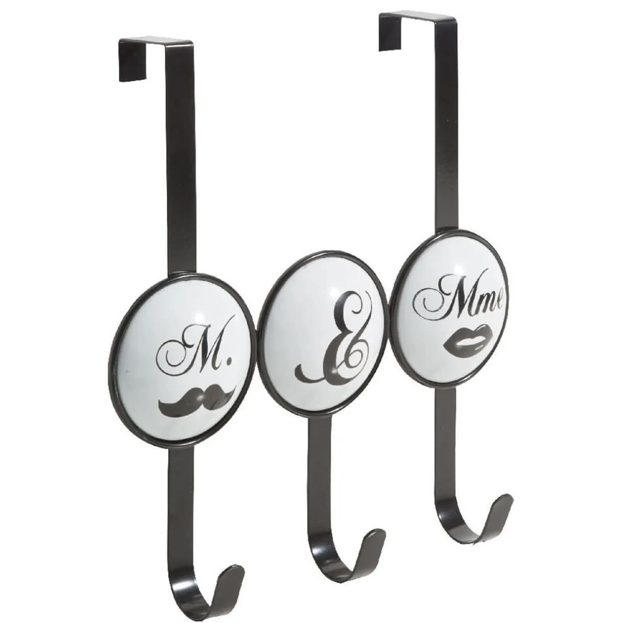 Patère 3 crochets Mr et Mme, dim. 26,5x11x29 cm, métal.