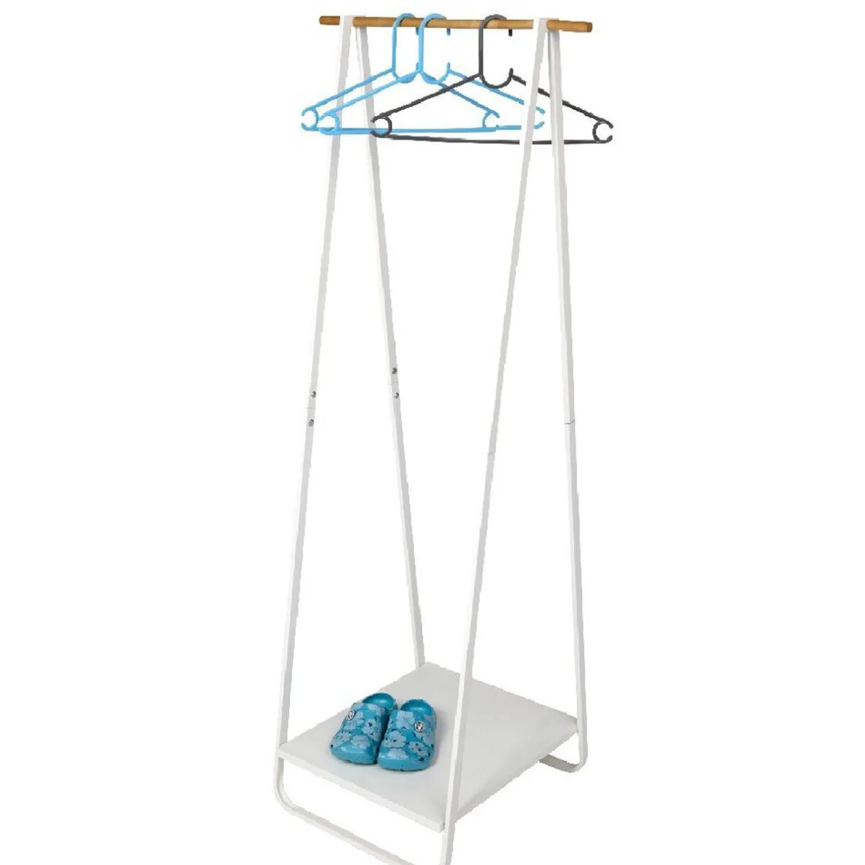 Portant vêtement simple blanc et couleur bois, dim. 40x52xh.140 cm, bois et métal.