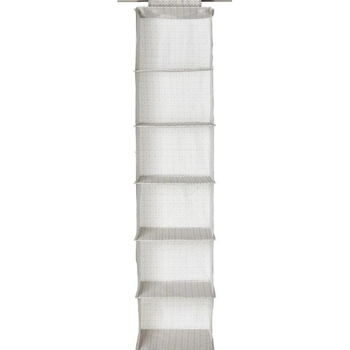 Doté de 6 compartiments, ce rangement à suspendre avec motifs triangulaires beiges et blancs sera idéal pour stocker vos vêtements ou encore votre linge de lit.