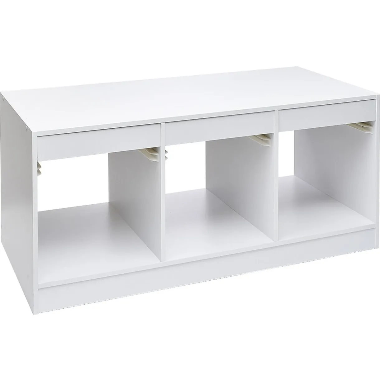 Adoptez cette structure de rangement blanche avec emplacement pour 3 bacs coulissants. Son design épuré se fondra aisément dans tous les décors, idéal dans l’entrée ou une chambre pour organiser vos affaires et y accéder facilement.