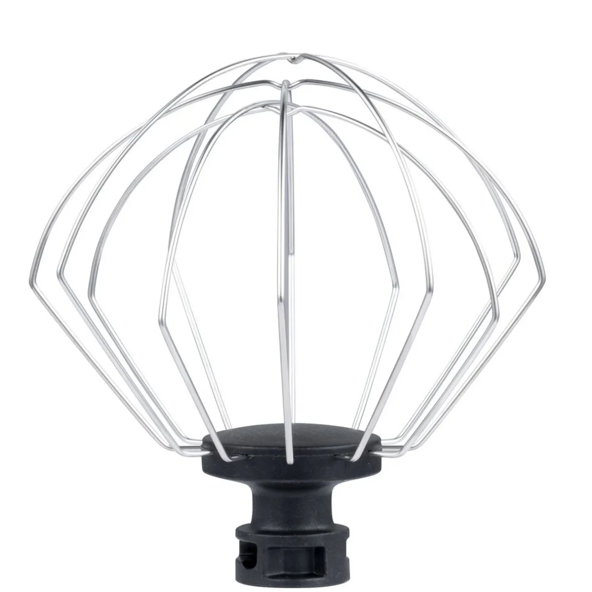 Inclus 3 accessoires en acier inoxydable, compatibles avec le lave-vaisselle : un fouet, un crochet à pâte et un batteur avec racloir.
