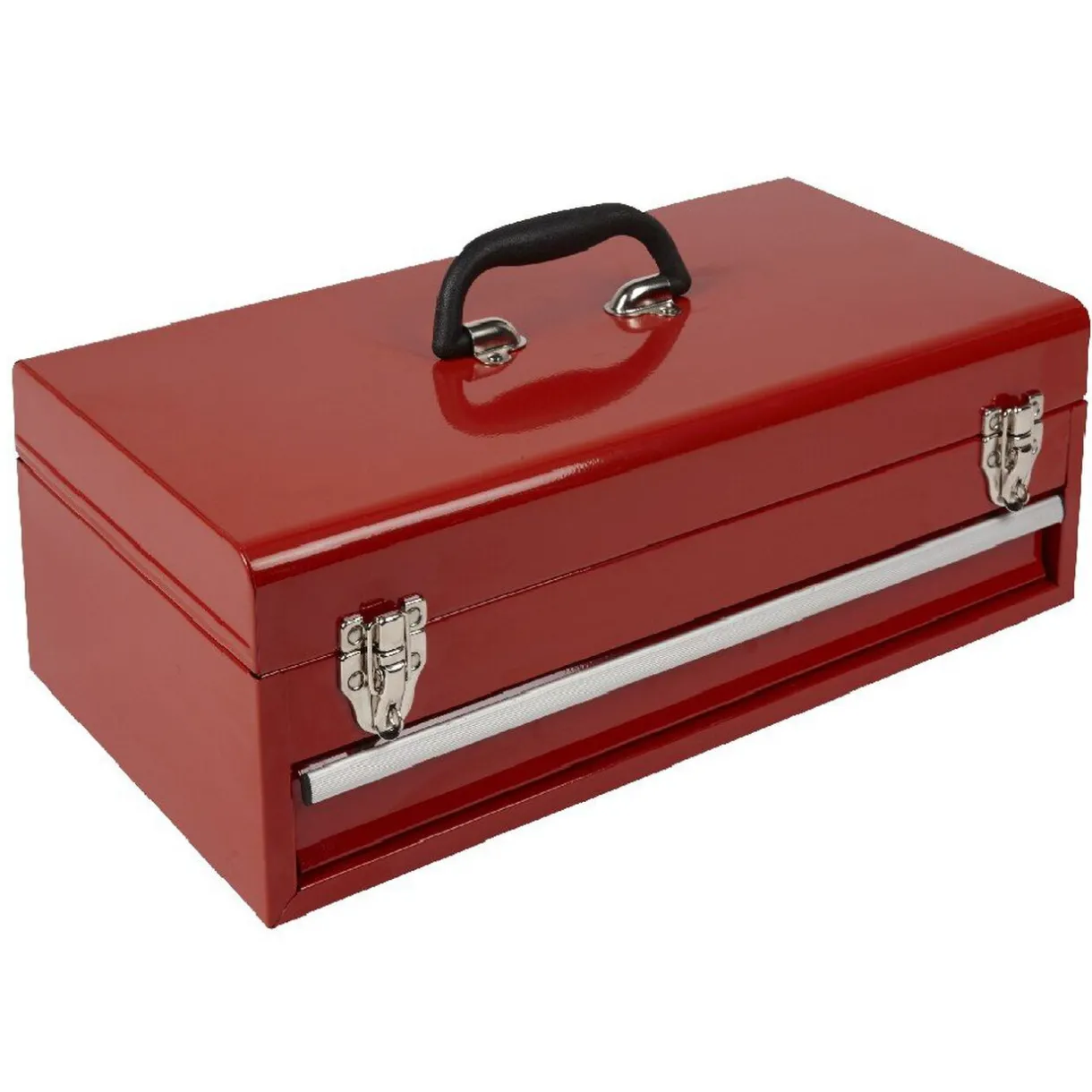 Boîte à outils 2 niveaux en métal avec poignée de transport, dim. 46,5x26x18,5 cm.