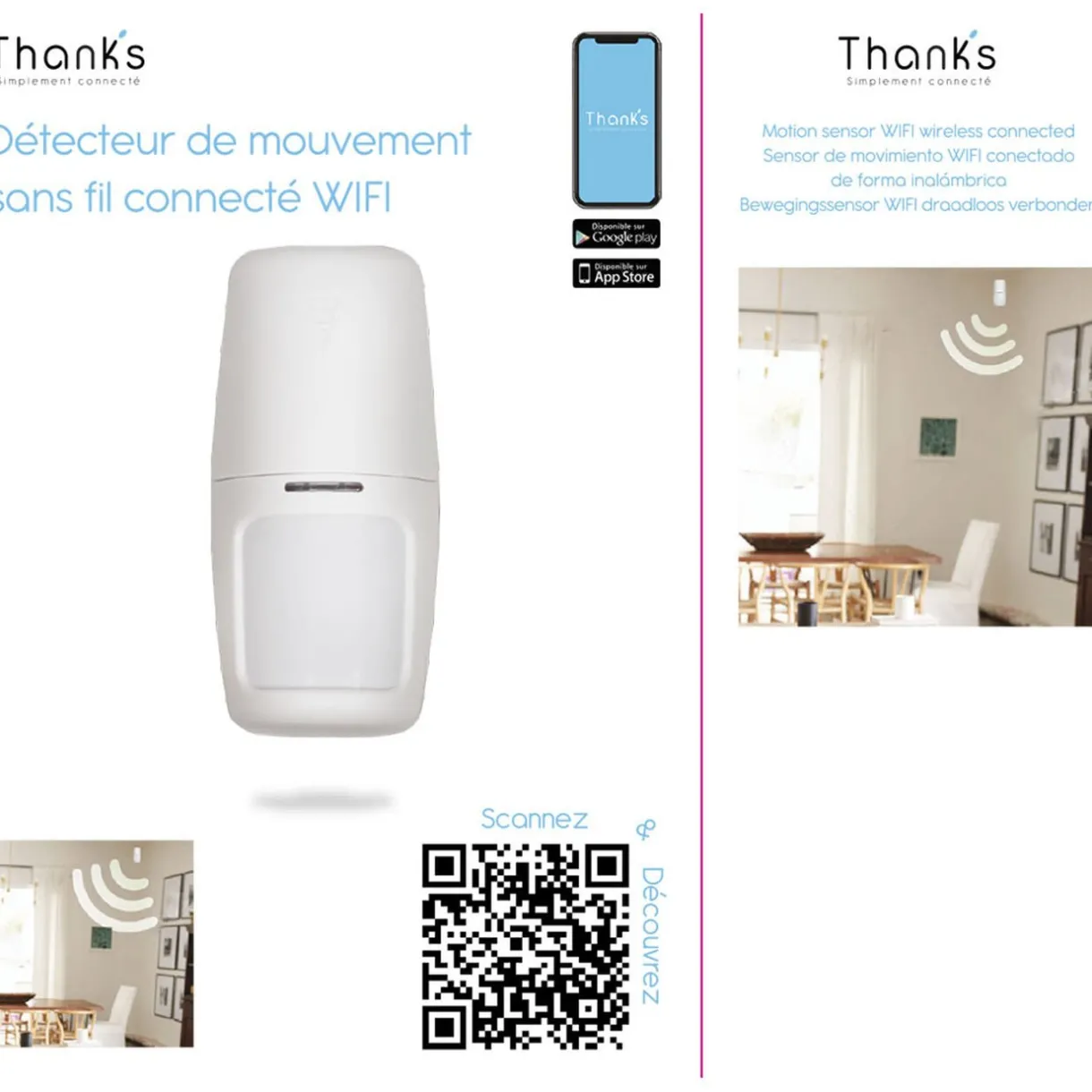 Détecteur de mouvement sans fil connecté WIFI.