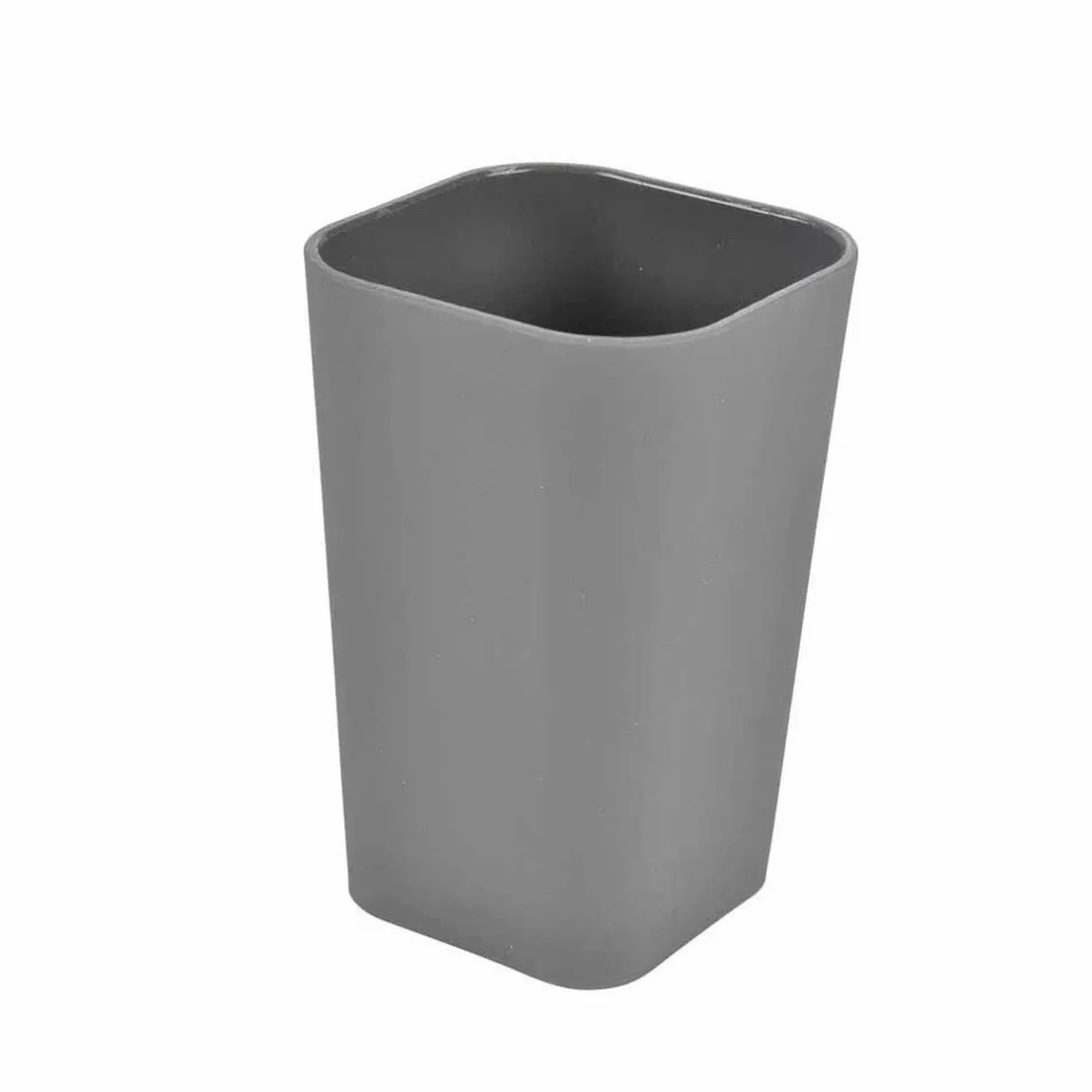 Gobelet porte-brosse à dents en plastique soft touch de couleur grise.