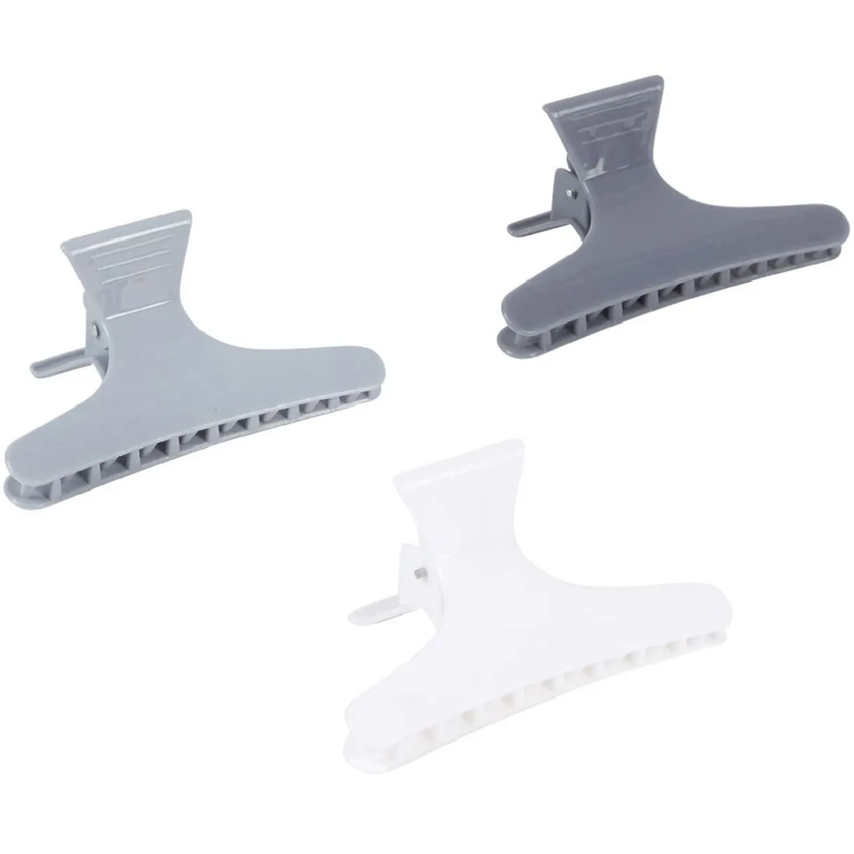 Lot de 3 pinces à cheveux en plastique uni blanc, gris clair et gris foncé.