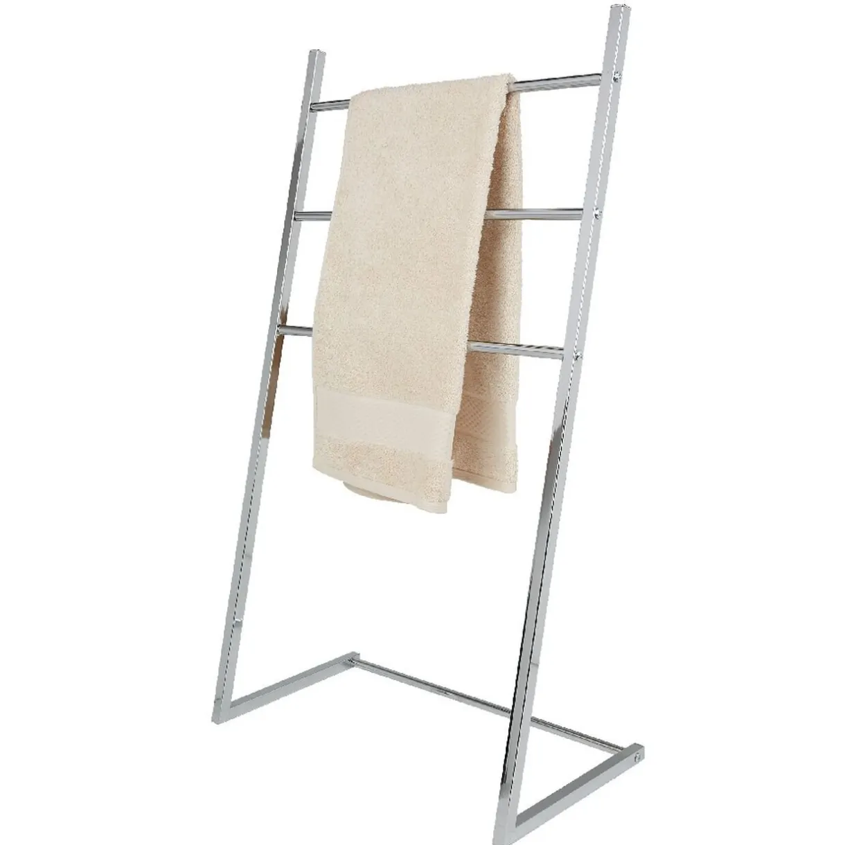 Porte serviettes sur pied en aluminium de style contemporain à 3 niveaux.