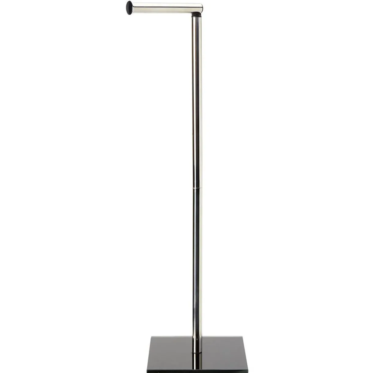 Serviteur pour papier WC en métal gris à poser avec dérouleur amovible.