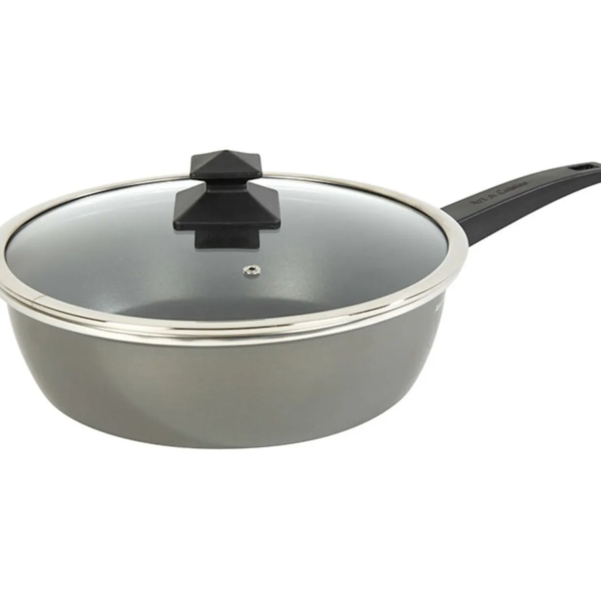 Sauteuse en acier émaillé, couvercle inclus, ø 28 cm, épaisseur 1,5 mm, intérieur antiadhésif, poignée bakélite ergonomique. Tous feux dont induction.