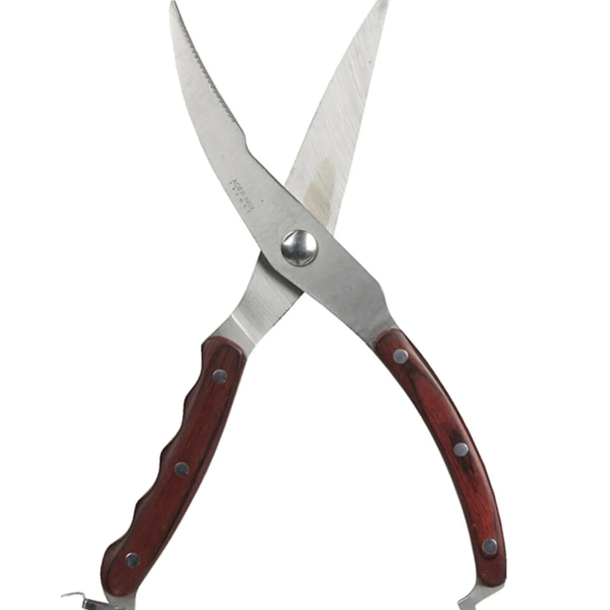 Sécateur volaille, dim. 26,5×5 cm, inox, manche en bois.