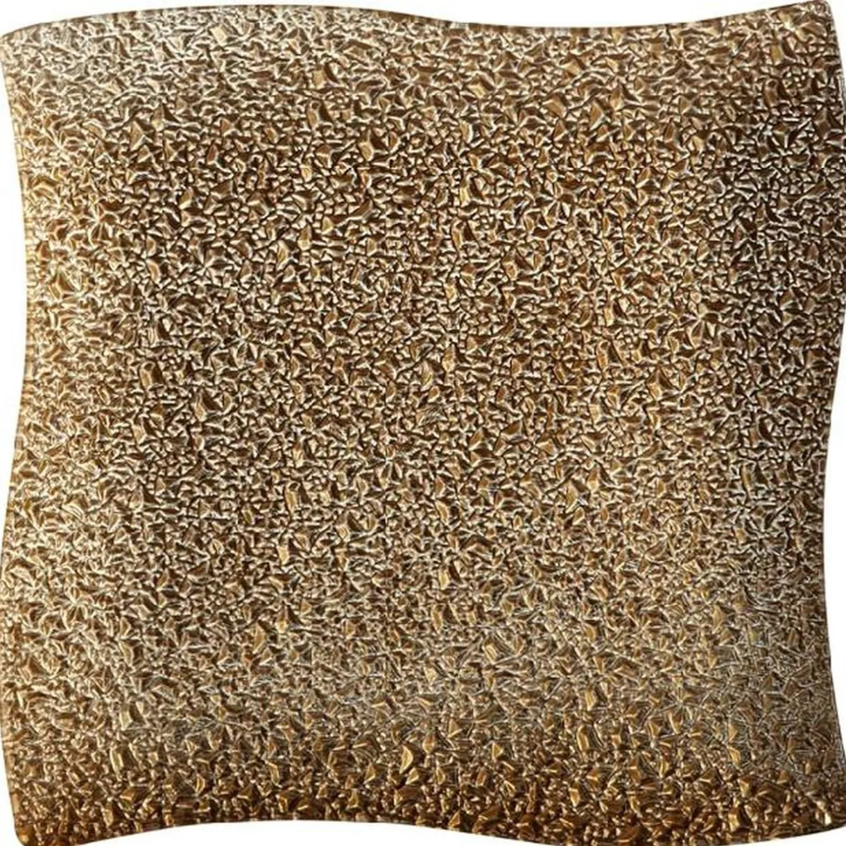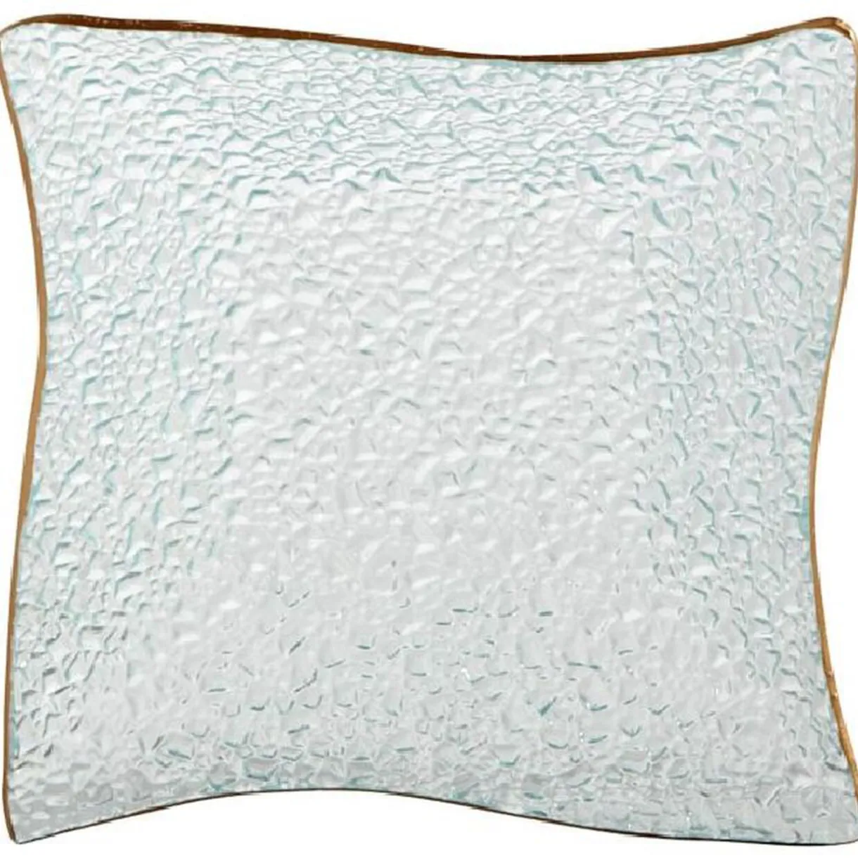 Service à vaisselle carrée de 18 pièces en verre bullé avec bordure dorée en forme de vague.