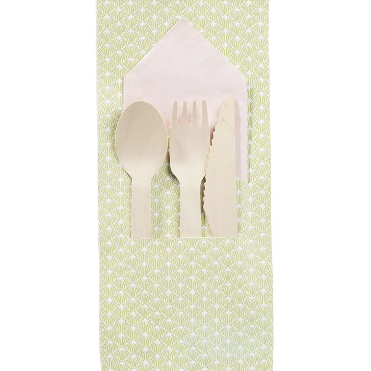 Lot de 3 couverts réutilisables en bois avec pochon pour pouvoir les emporter partout avec soi.