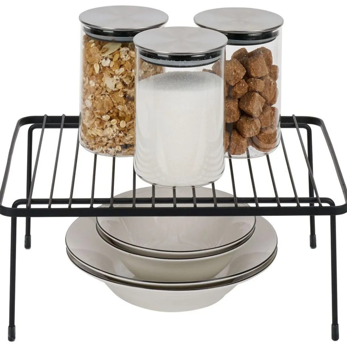 Pratique, ce support extensible en métal permet de créer un espace de rangement supplémentaire dans un placard ou sur un plan de travail. Idéal pour optimer l’espace dans la cuisine ou toute autre pièce de votre choix.