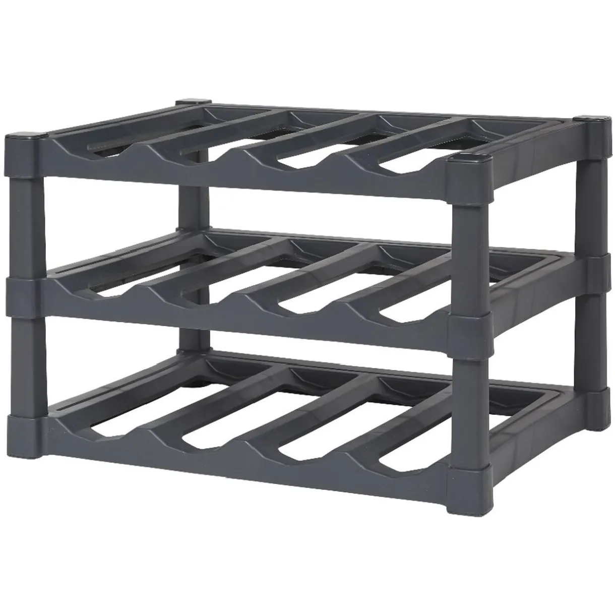 Facilitez-vous le rangement de vos bouteilles de vin, soda et eau minérale avec ce support en plastique noir pouvant accueillir jusqu’à 12 bouteilles. Posé au sol ou sur une étagère de votre cellier, cuisine ou garage, les bouteilles seront toujours bien rangées et faciles d’accès.