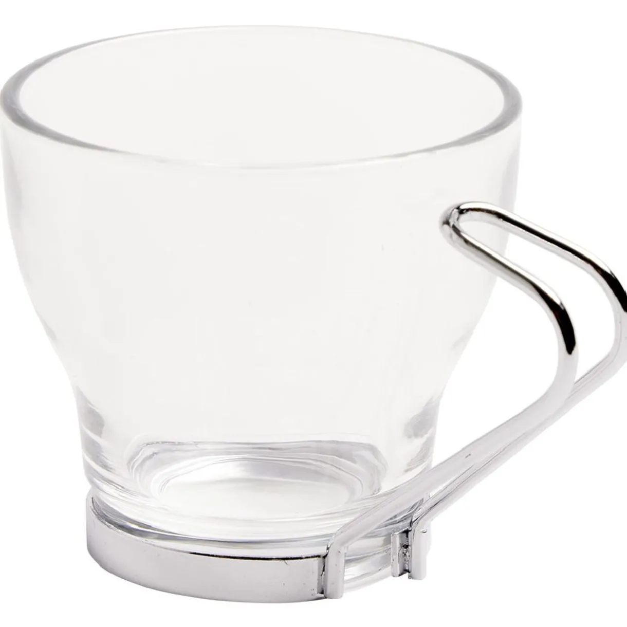 6 tasses à café originales en verre avec anse en métal.