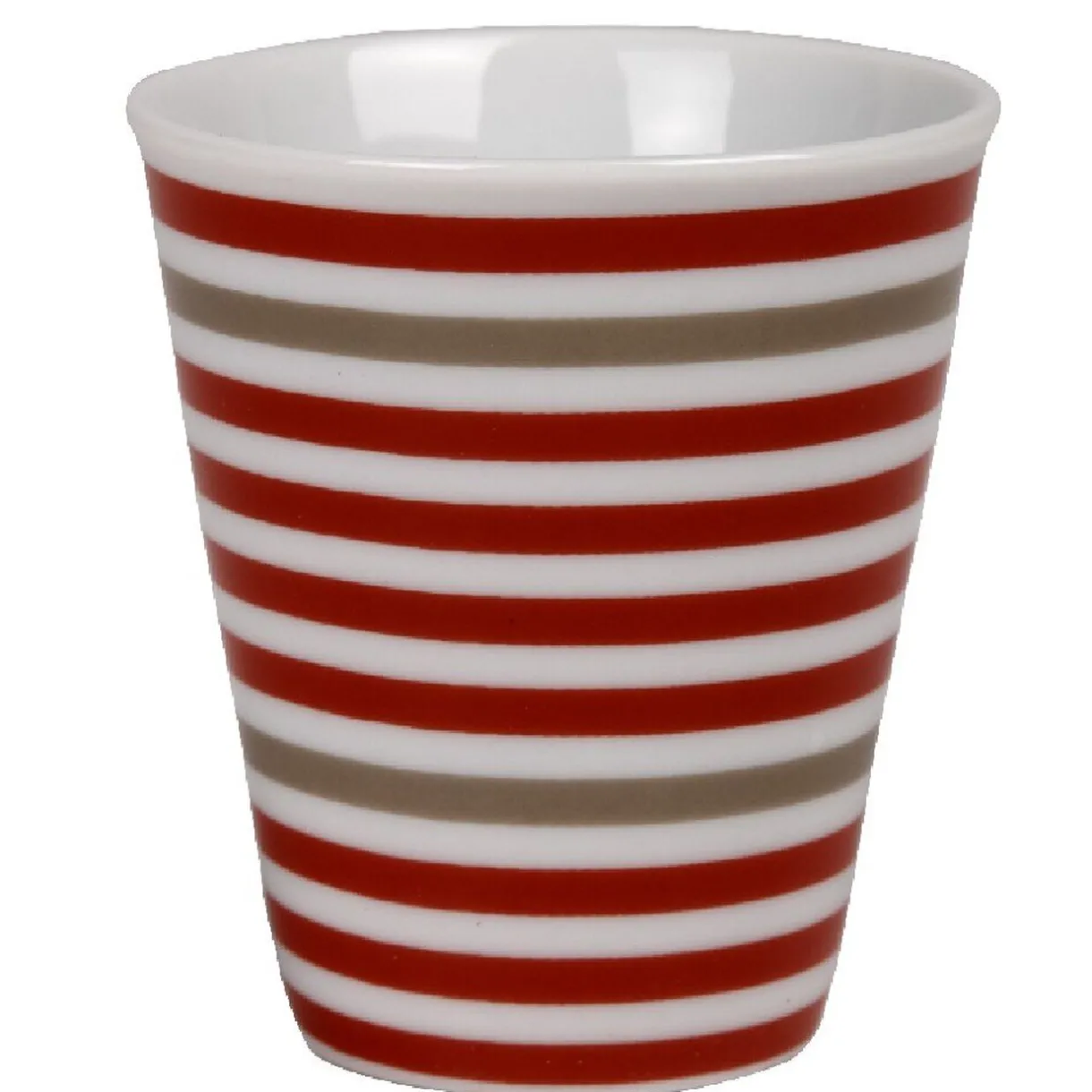 Coffret de 4 tasses à expresso blanches à rayures rouges et taupe.