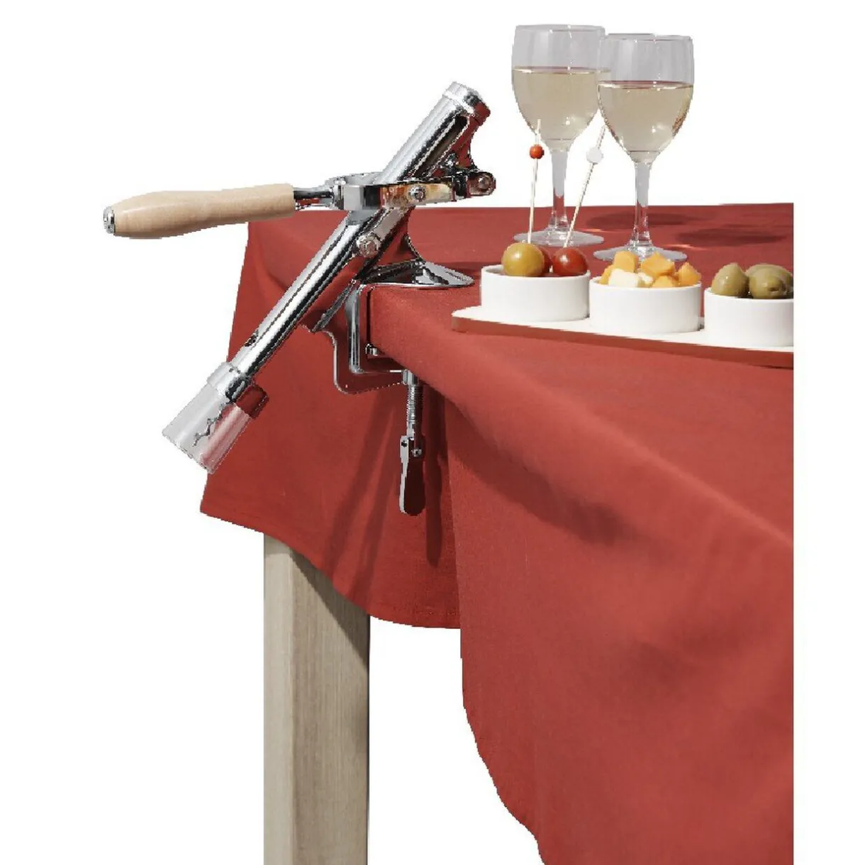 Ce tire bouchon en inox avec levier en bois se fixe sur un bar, une table ou un comptoir, il apportera une ambiance conviviale et bistrot lors de vos soirées entre amis et proches.