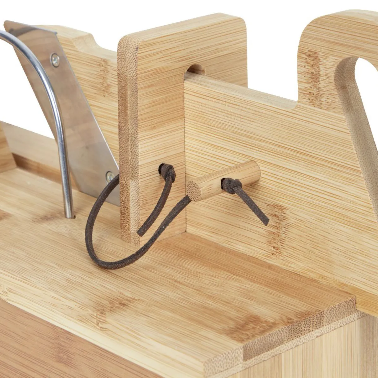Fini les difficultés pour couper votre saucisson ! Avec cette trancheuse en bois, vous trancherez votre saucisson sans effort !