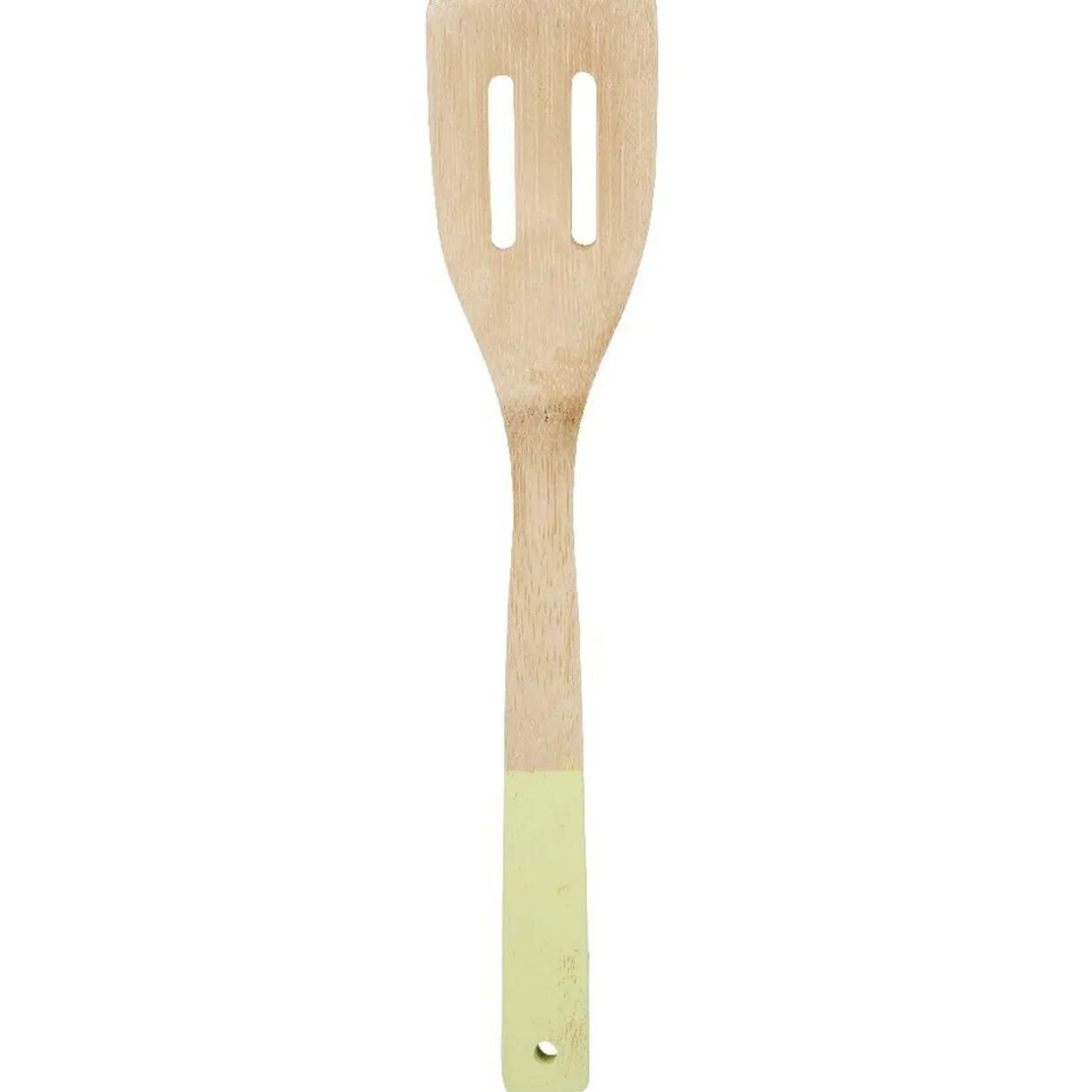 Léger et résistant, cet ensemble de 5 ustensiles de cuisine en bambou naturel avec manche coloré apportera une belle touche vitaminée dans votre cusine.