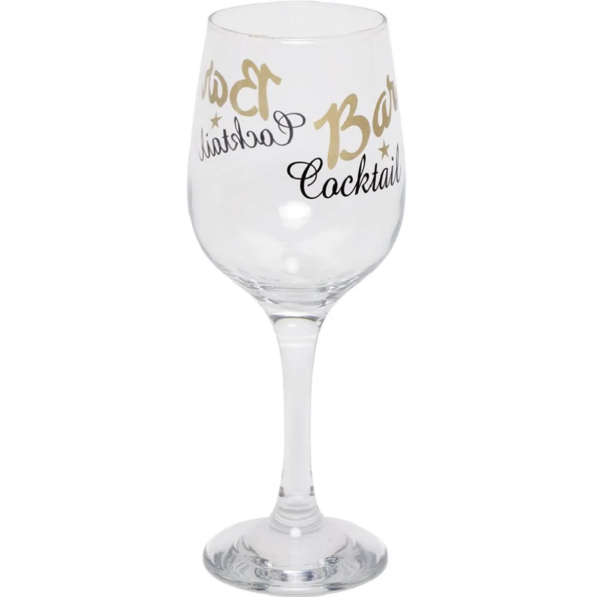 Lot de 2 verres à pied avec inscription noire et dorée, idéal pour faire de délicieux coktails.