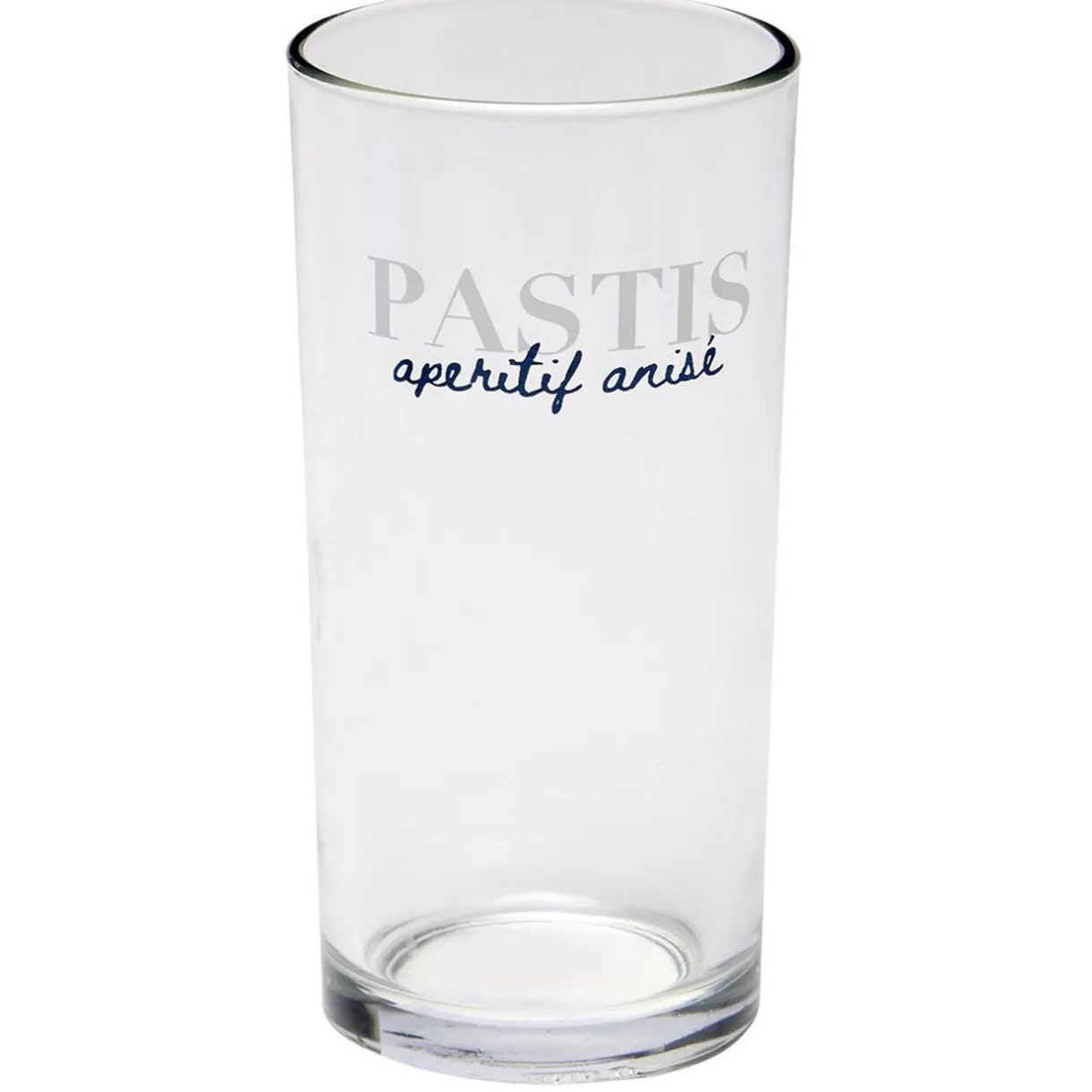 Verre tubo transparent avec inscription « PASTIS apéritif anisé ».